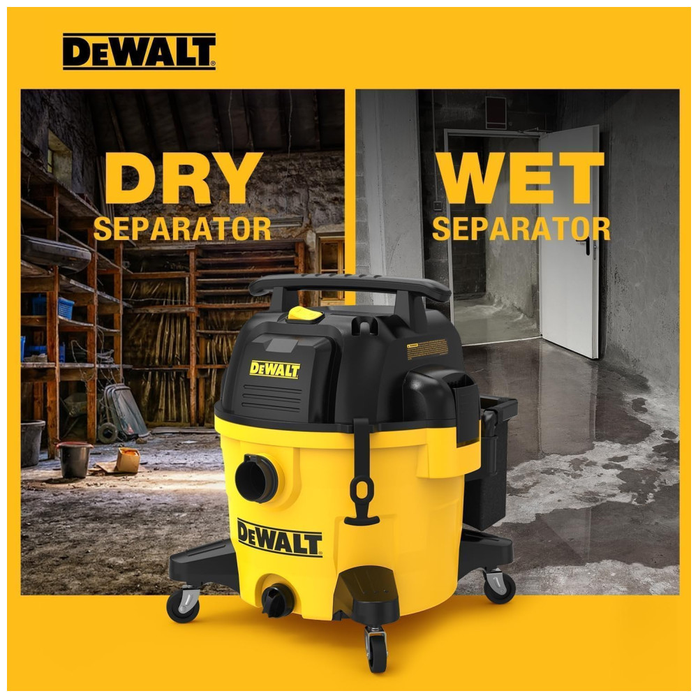 Maior capacidade: O aspirador de pó úmido e seco DEWALT DXV09P-QTA tem uma capacidade generosa de 34 litros, facilitando pequenos trabalhos de limpeza ao reduzir a necessidade de esvaziar o balde com tanta frequência.