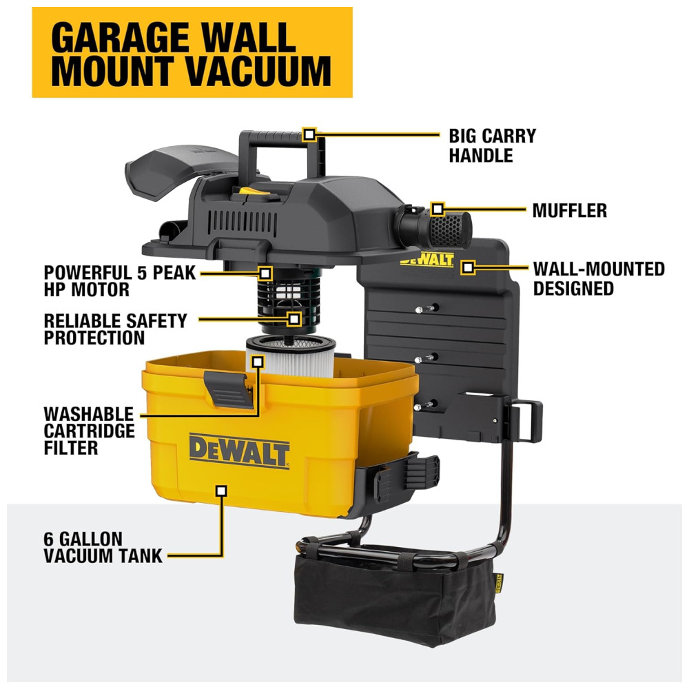 Descubra o poderoso Aspirador DEWALT de 6 Galões, modelo DXV06G, uma ferramenta essencial para quem procura eficiência e versatilidade em limpeza. Perfeito para ambientes internos e externos, este aspirador eleva a limpeza da sua garagem ou oficina a um novo nível.