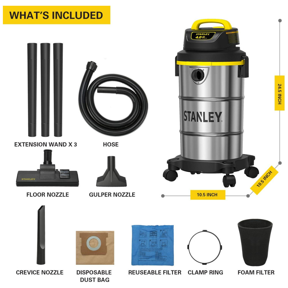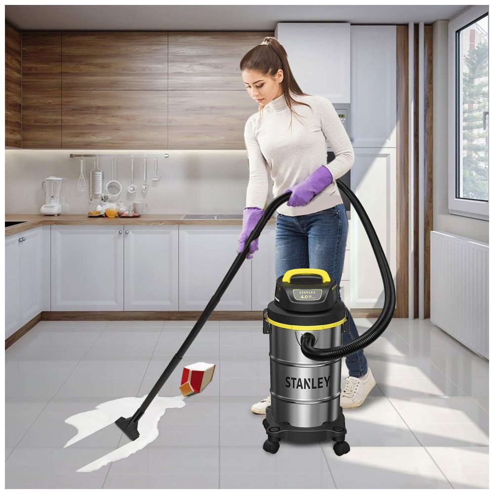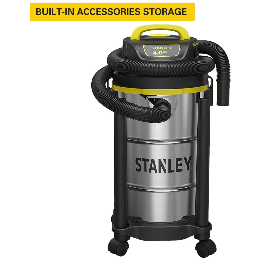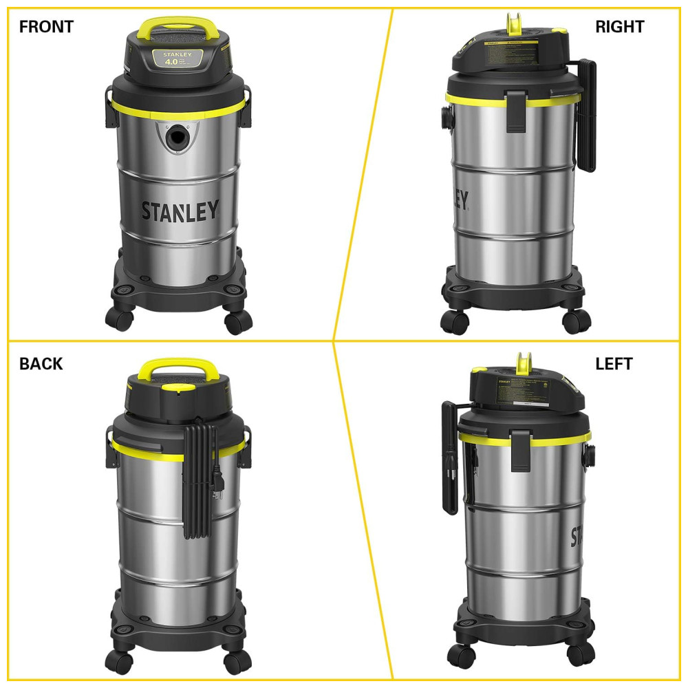 Aspirador de Pó Úmido e Seco de 1895L 4CV Tanque em Aço Inox 110V 600W Stanley SL18130 Amarelo Prateado