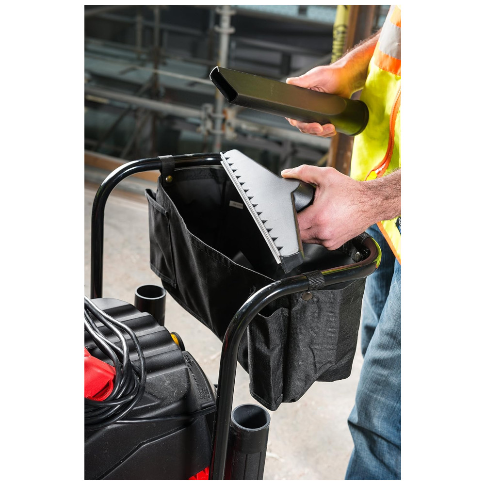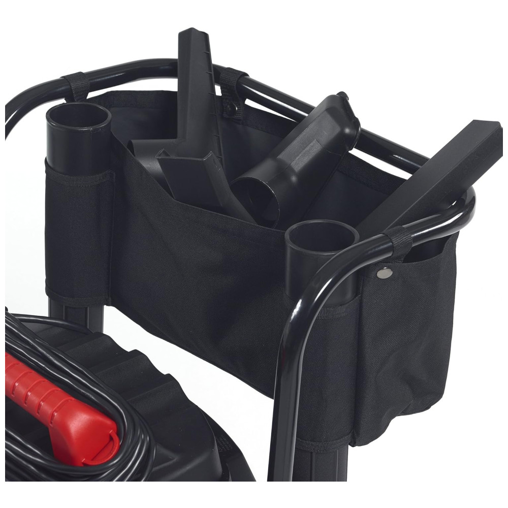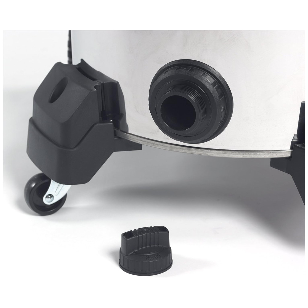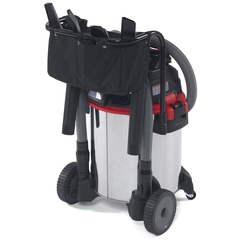 O aspirador é fácil de usar e possui um carrinho resistente, alça de empurrar e grandes rodas traseiras para fácil mobilidade em terrenos mais acidentados. A alça também atua como um enrolador de cabo para o cabo de alimentação de 20. O tambor de aço inoxidável durável e de aparência profissional possui um dreno extra grande que permite esvaziar facilmente os líquidos, e a bolsa de armazenamento anexada mantém os acessórios organizados de maneira conveniente.