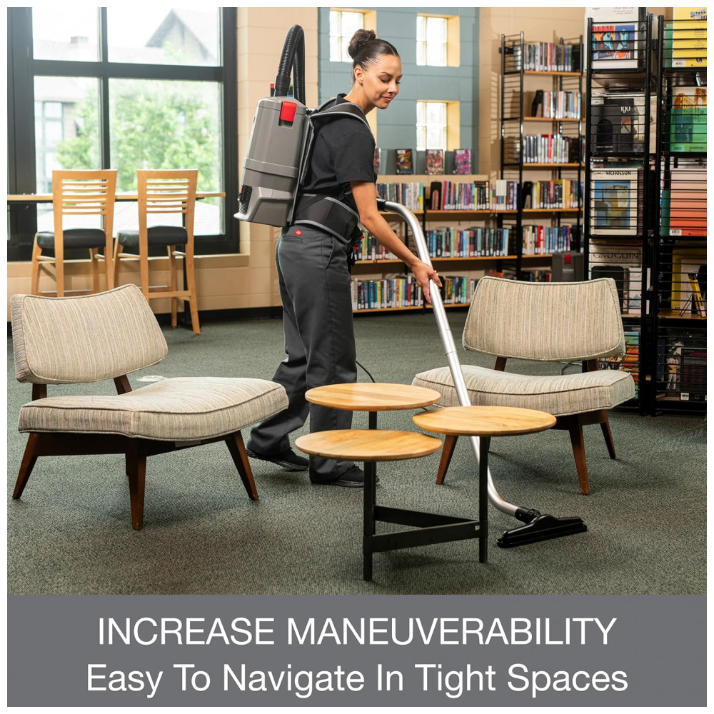 O aspirador mochila com fio Sanitaire Transport SC570A utiliza motor brushless de longa duração com plásticos reforçados e acabamento metálico para resistência em uso comercial diário, otimizando produtividade em até 46% mais área que aspiradores verticais tradicionais em escritórios. Sistema de filtração HEPA selado captura 99,97% de partículas a partir de 0,3 mícrons, com fluxo de ar constante para limpeza em todos os tipos de piso interno. Cabo de alimentação proporciona energia ininterrupta em turnos prolongados, com cinto ergonômico ventilado e alças acolchoadas para distribuição equilibrada do peso durante operação contínua.