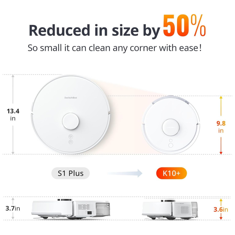 O mini aspirador robô SwitchBot K10 é uma opção compacta e eficiente para limpeza extensiva. Com tamanho 50 menor que os aspiradores tradicionais, ele é fácil de manobrar em cantos e embaixo de mesas. Seu algoritmo de rota LiDAR permite uma limpeza precisa em pontos de difícil acesso, aumentando a eficiência em 90 .