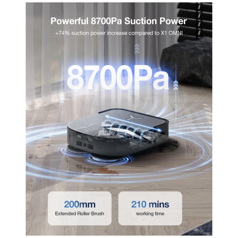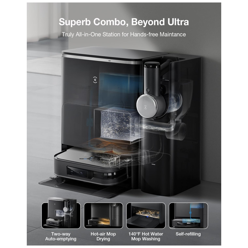 Aspirador Robô com Sucção Forte de 8000Pa Água Quente e Esvaziamento Automático 110V ECOVACS X2 OMNI Combo Preto