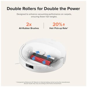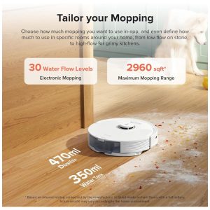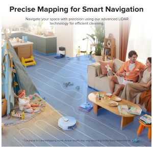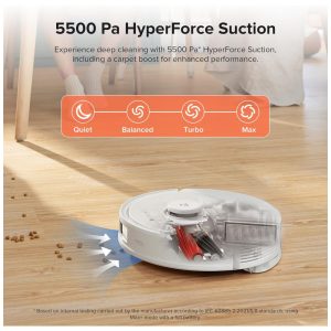 O robô também emprega a tecnologia reativa de prevenção de obstáculos para garantir uma limpeza contínua e ininterrupta. Com a poderosa sucção HyperForce de 5500 Pa e a eficiência da escova DuoRoller, o desempenho de limpeza é profundo e completo, especialmente em carpetes. A navegação PreciSense LiDAR permite mapeamento rápido e preciso para limpeza eficiente em qualquer ambiente, e o controle pode ser feito facilmente pelo aplicativo móvel ou por comando de voz.