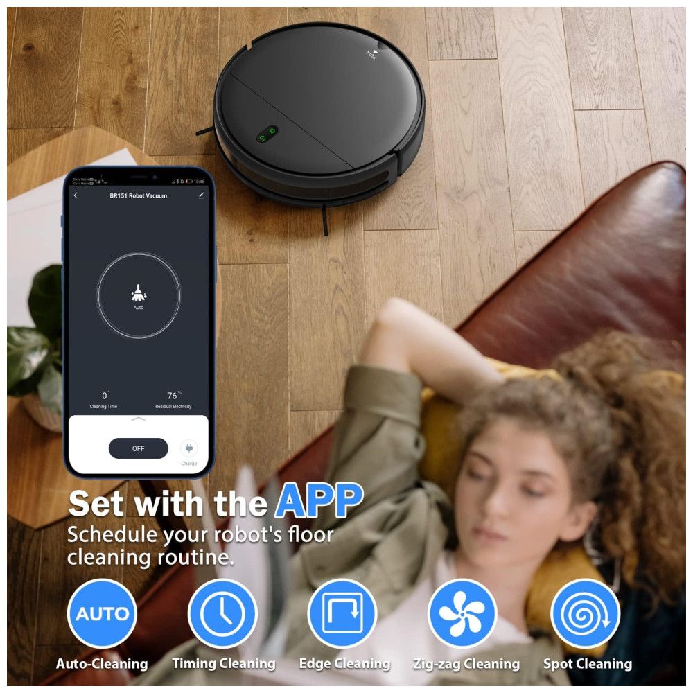 O controle do robô aspirador pode ser feito através de voz, por meio do aplicativo Tuya Smart, que permite criar facilmente uma programação de limpeza doméstica, alterar o modo de limpeza e controlar a direção da limpeza. Ele também é compatível com Alexa e Google Assistant, o que permite aos usuários iniciar e interromper a limpeza por comandos de voz. Além disso, o pacote inclui um controle remoto para maior comodidade.