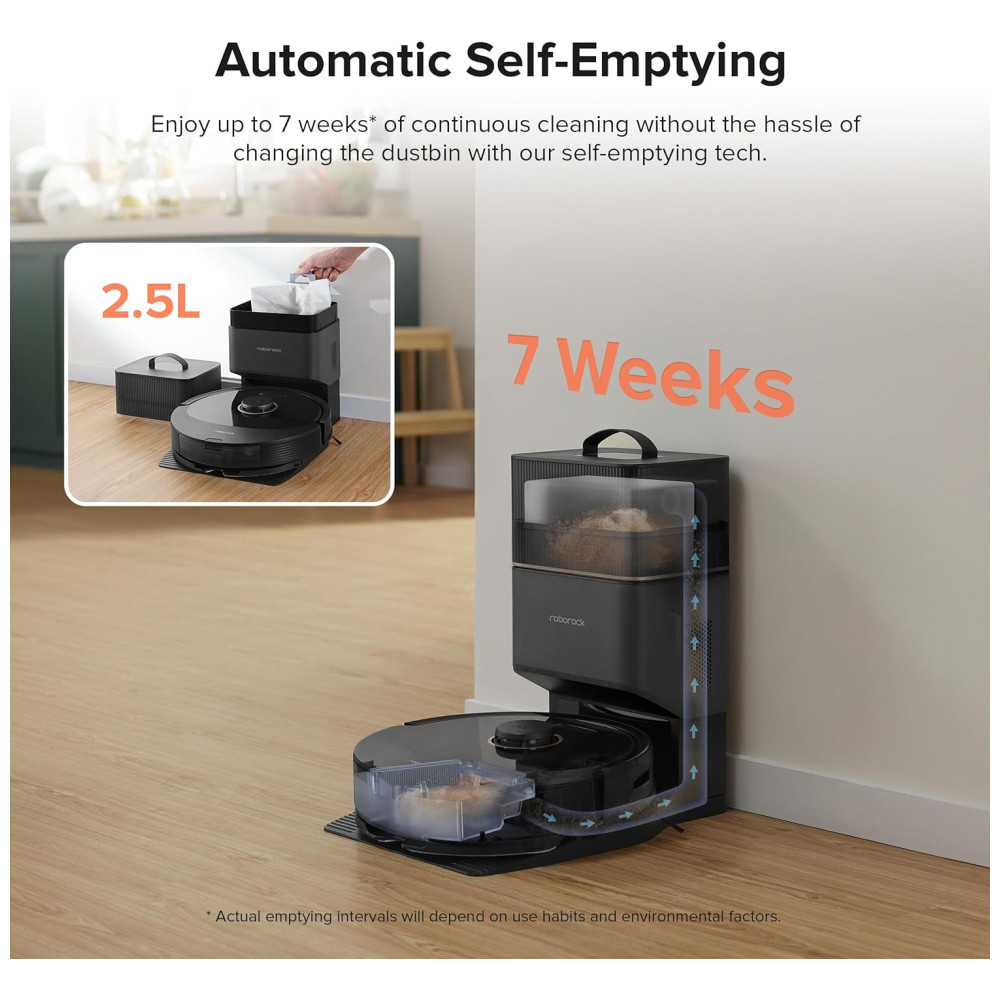 Desfrute de uma experiência de autolimpeza aprimorada com o Roborock Q8 Max, que apresenta a função de autolimpeza com um saco de poeira de 2,5 litros que permite até 7 semanas de limpeza sem a necessidade de trocas manuais. Personalize a intensidade da limpeza de acordo com o tipo de piso e a área da casa, desde uma limpeza suave até uma limpeza intensiva. Com tecnologia reativa de esquiva de obstáculos, sucção poderosa de 5500 Pa, escova DuoRoller eficiente, navegação precisa com mapeamento 3D e controle por aplicativo ou comando de voz, o Roborock Q8 Max garante uma limpeza profunda e eficaz em todos os cantos da sua casa.