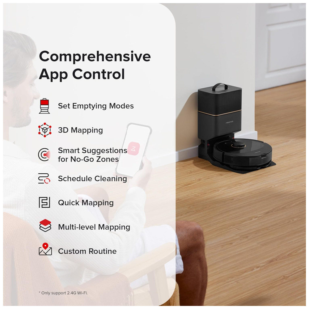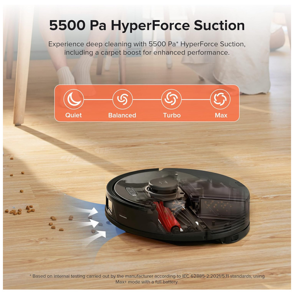 Característica Especial: Controle por APP, Escova DuoRoller, Sucção Poderosa de 5500Pa, Tecnologia Reactiva de Esquiva de Obstáculos, Baixo Ruído, Coleta Automática de Poeira, Escova Flutuante Multidirecional, Controle por App: Controle de Sucção Variável, Mapeamento Multi-pisos, Zona Proibida, Limpeza Personalizada Avançada, Agendamento; Controle por Voz, Coleta de Pelo de Animais, Funciona com Alexa, Auto-encaixe, Antiqueda, Sem Fio, Limpeza de Borda, Vácuo e Mopagem Simultâneos, Esquiva de Obstáculos, Mapeamento e Navegação a Laser Precisos, Autolimpeza.