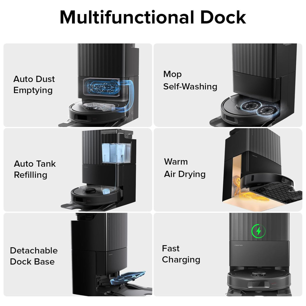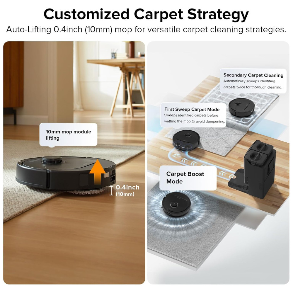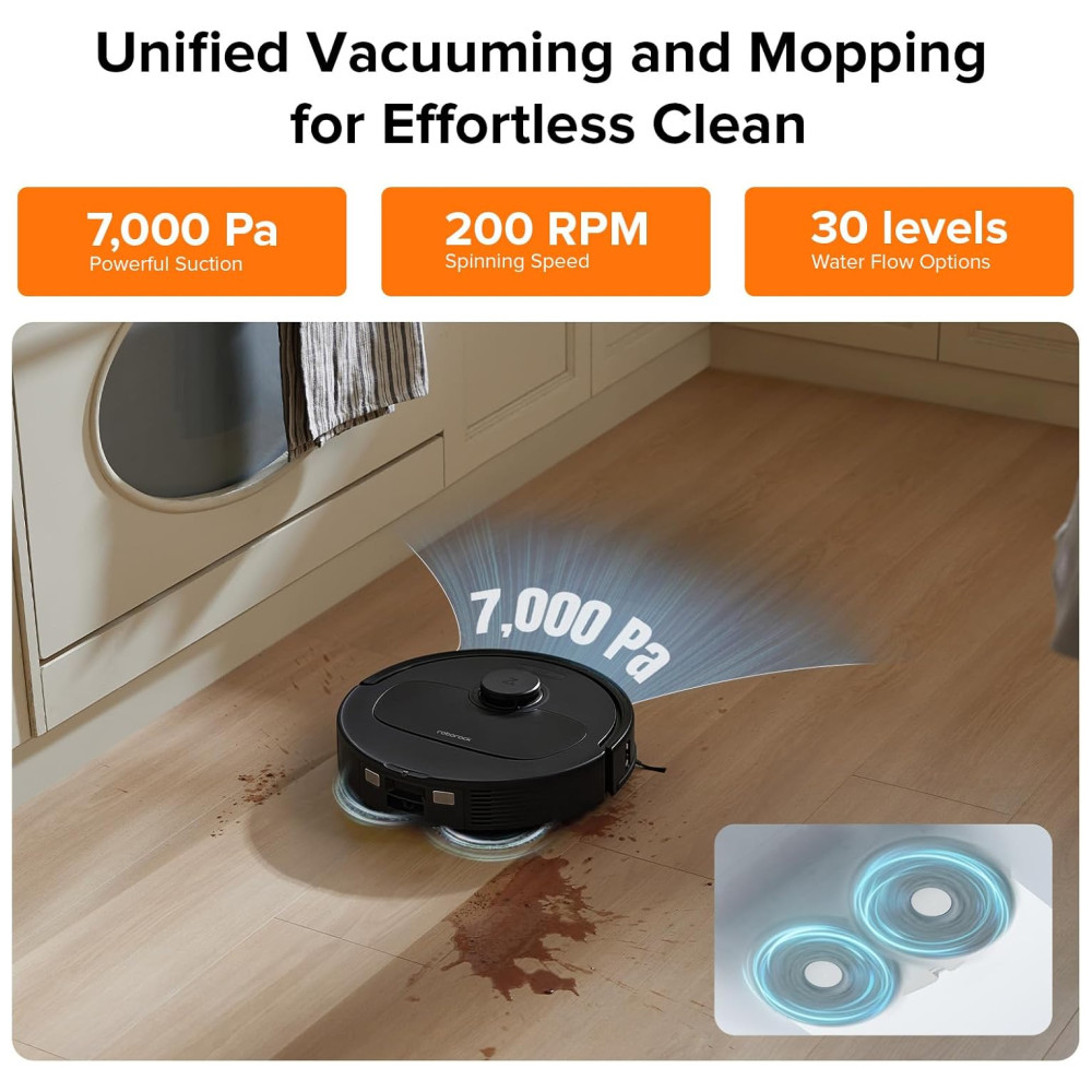 O Roborock Qrevo Plus é um aspirador robô multifuncional e esfregão em um só produto. Com um design inovador e flexível, oferece conveniência total, incluindo um sistema automático de lavagem de esfregão, ajuste dinâmico de velocidade e fluxo de água para limpeza eficiente. Com seus dois mops giratórios e poderosa sucção de 7000 Pa, o Qrevo Plus garante uma limpeza profunda em pisos e tapetes. Além disso, sua tecnologia reativa de evitação de obstáculos e cuidado inteligente com carpetes tornam-no uma escolha ideal para casas com animais de estimação e muito mais. Também é compatível com assistentes de voz e oferece controle via aplicativo para uma experiência de limpeza avançada e conveniente.