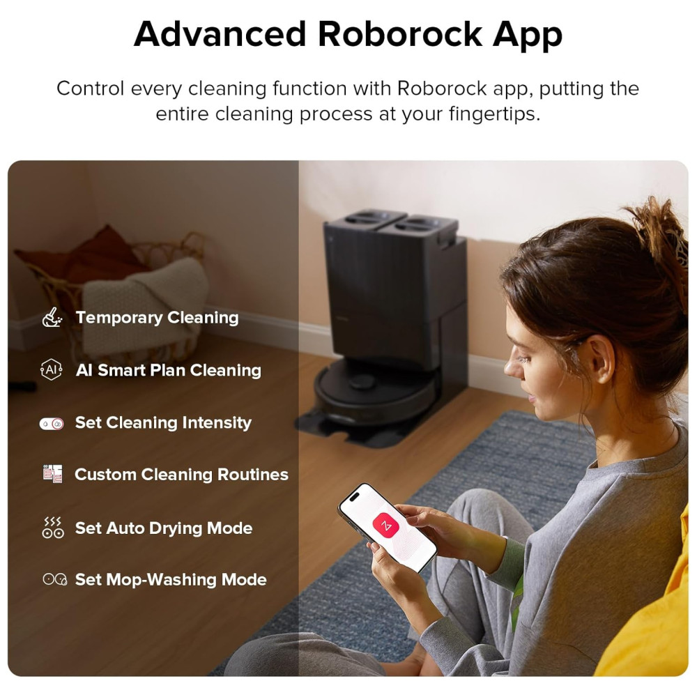 Aspirador Robô e Esfregão Roborock Qrevo Plus com Design FlexiArm Auto Limpeza Esfregão de Borda Tecnologia de Evitação de Obstáculos Sucção de 483 mBar