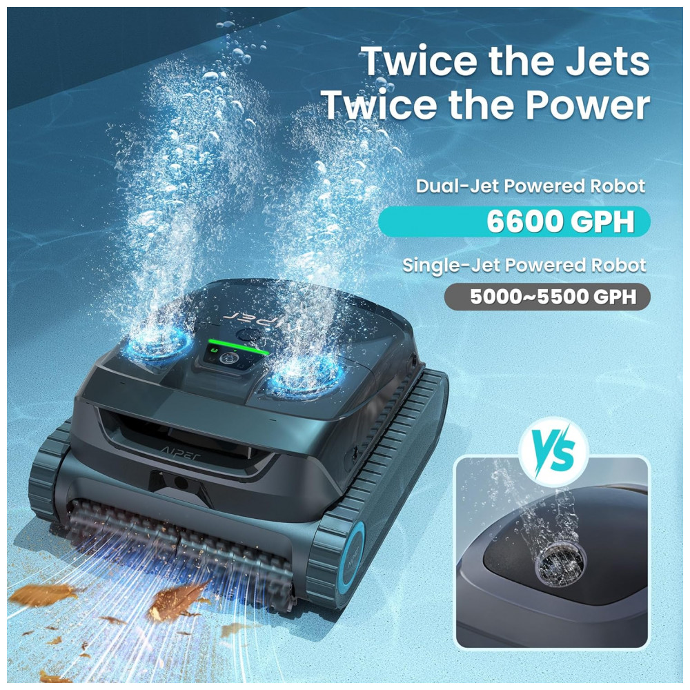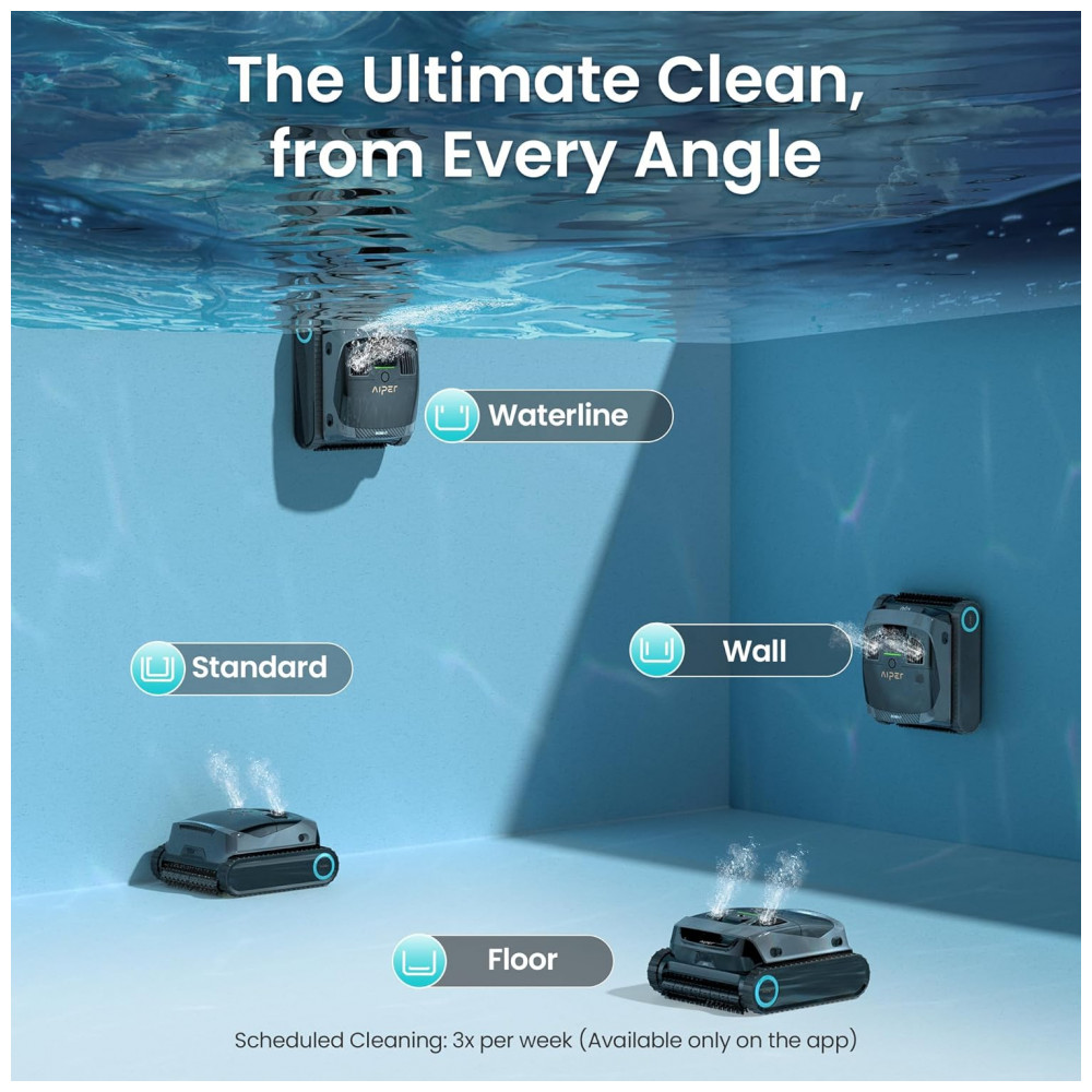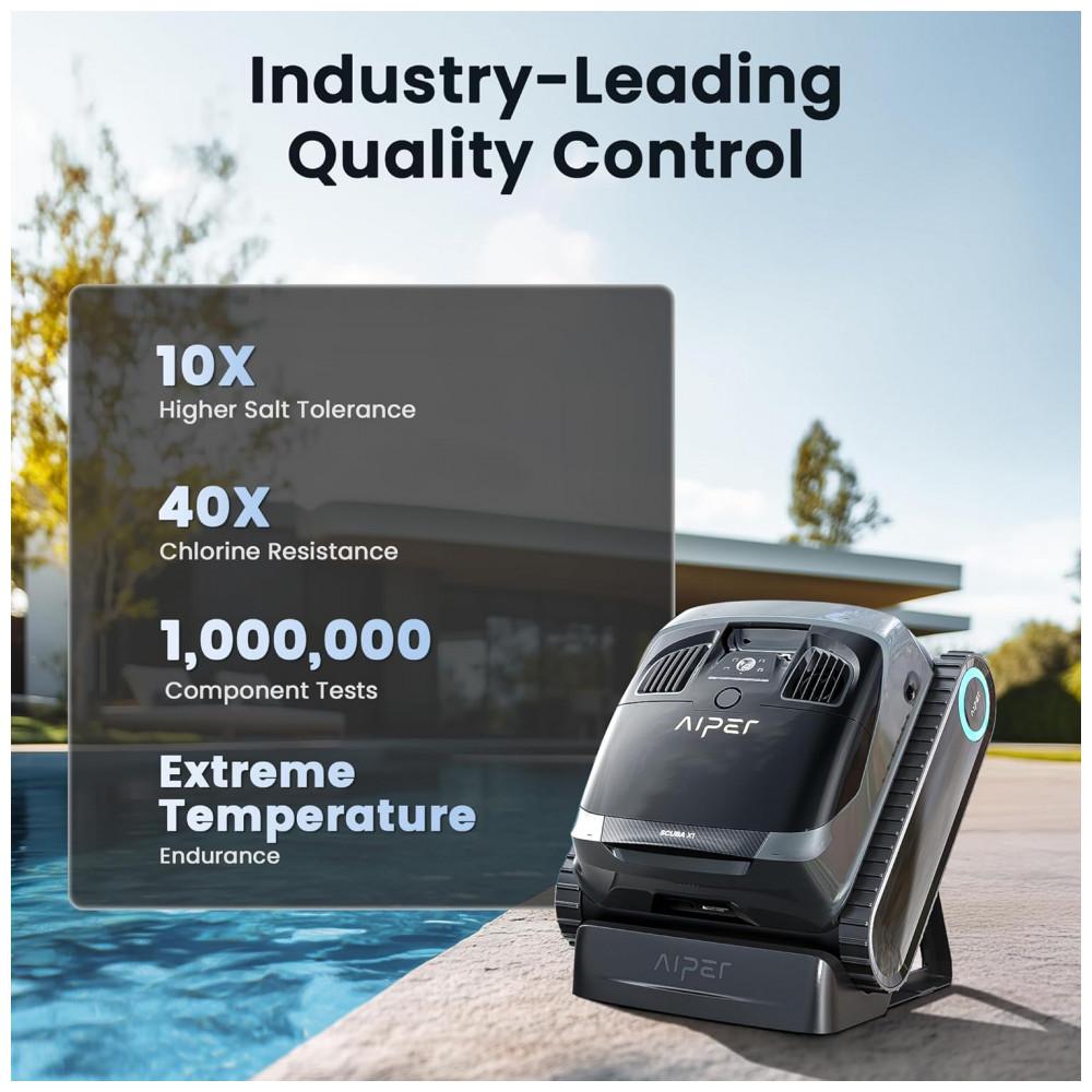 O AIPER Scuba X1 é um aspirador robótico sem fio equipado com sucção de 6600 GPH (aproximadamente 25.000 litros por hora) e jatos duplos para remoção eficiente de areia fina, seixos e detritos em piscinas enterradas de até 200 m². A tecnologia WaveLine 2.0 realiza escovação horizontal constante na linha d’água, enquanto o sistema de navegação em padrão cruzado com adaptação inteligente ajusta rotas para formatos de piscina variados, incluindo inclinações até 45 graus e fundos em tigela ou diamante. O filtro multicamadas com MicroMesh captura partículas de até 3 μm, complementado por cesta de filtro superior para manutenção rápida. A bateria de íon-lítio aprimorada suporta até 180 minutos de operação contínua em 4+1 modos de limpeza programáveis, com base de carregamento sem fio inclusa para recarga automática. Sensores avançados e processador quad-core otimizam cobertura total, evitando colisões e maximizando eficiência energética.