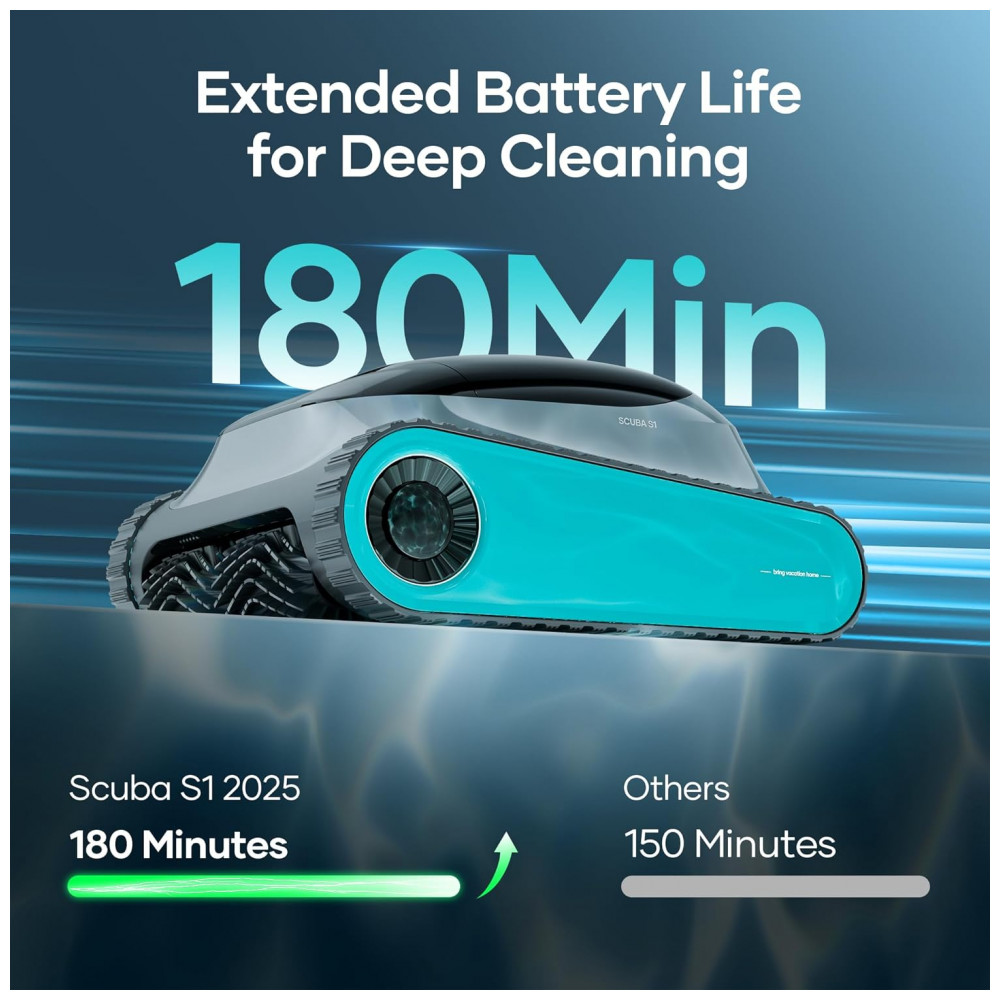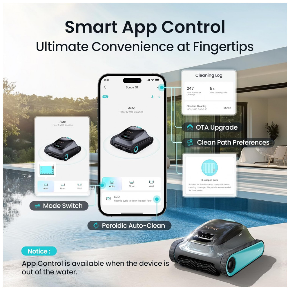 Aspirador Robótico para Piscinas AIPER Scuba S1 Cinza e Azul Navegação WavePath 2.0 Dupla Filtração Ultra-fina Bateria 180 Min Modelo 2025