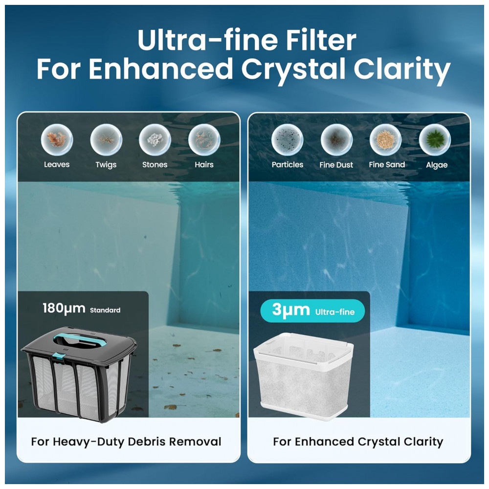 O aspirador robótico AIPER Scuba S1 é projetado para limpeza eficiente de piscinas enterradas e elevadas com até 150 m², utilizando tecnologia avançada WavePath 2.0 para navegação inteligente que cobre piso, paredes e linha d’água. Equipado com motor brushless e sistema de filtração dupla que combina filtro padrão de 180 micra e filtro ultrafino MicroMesh™ de 3 micra, captura detritos desde folhas até partículas finas como poeira e areia. Possui bateria recarregável de 7.800 mAh com autonomia de até 180 minutos e recarga em 3 a 4 horas. O robô conta com 3 modos de limpeza (automático, piso e parede), capacidade de escalar paredes até 105° e transpor obstáculos de até 4 cm. Controle por aplicativo inteligente permite agendamento e monitoramento facilitado. O dispositivo tem dimensões de 44,2 x 29,7 x 52,8 cm e peso aproximado de 1,5 kg, fabricado com materiais plásticos duráveis.