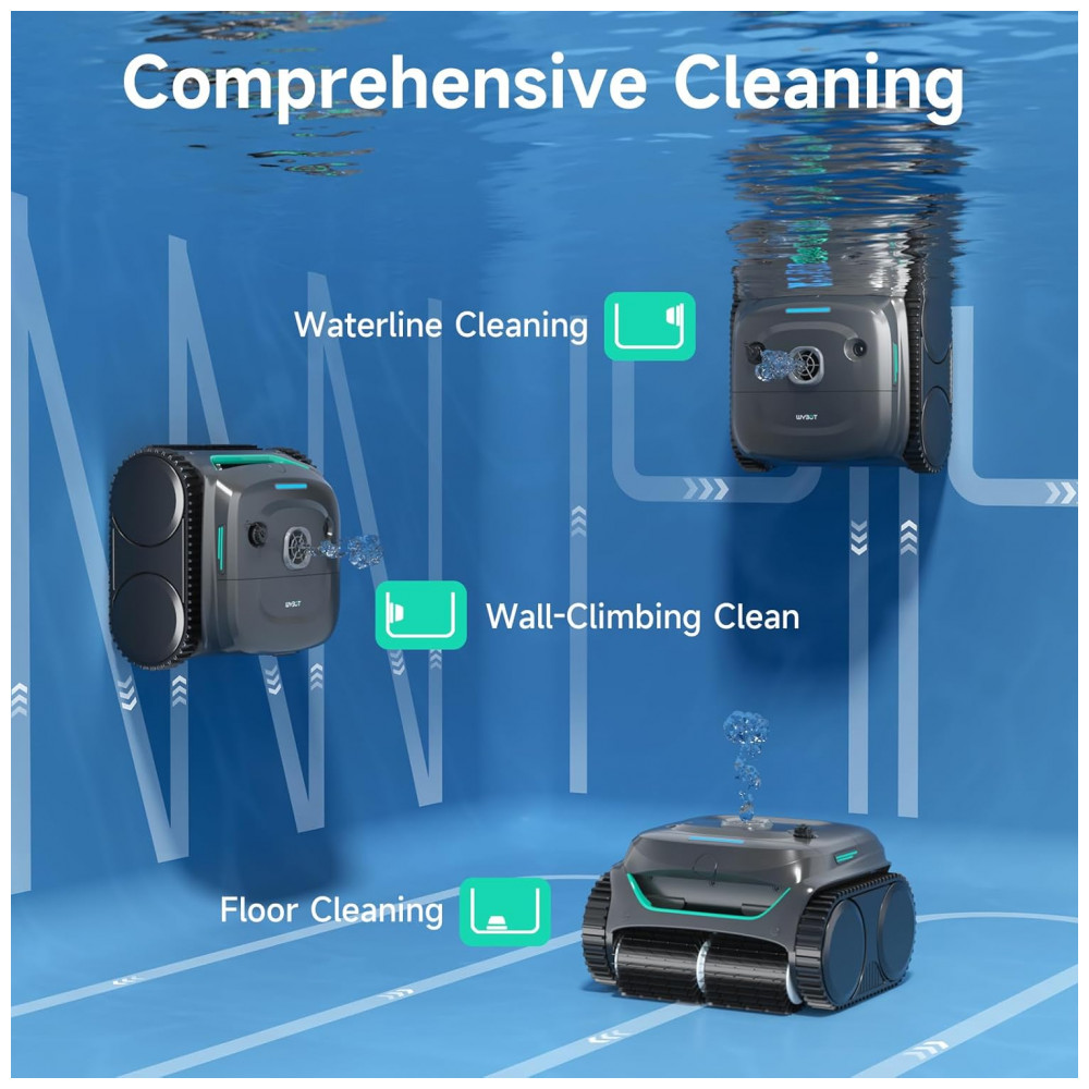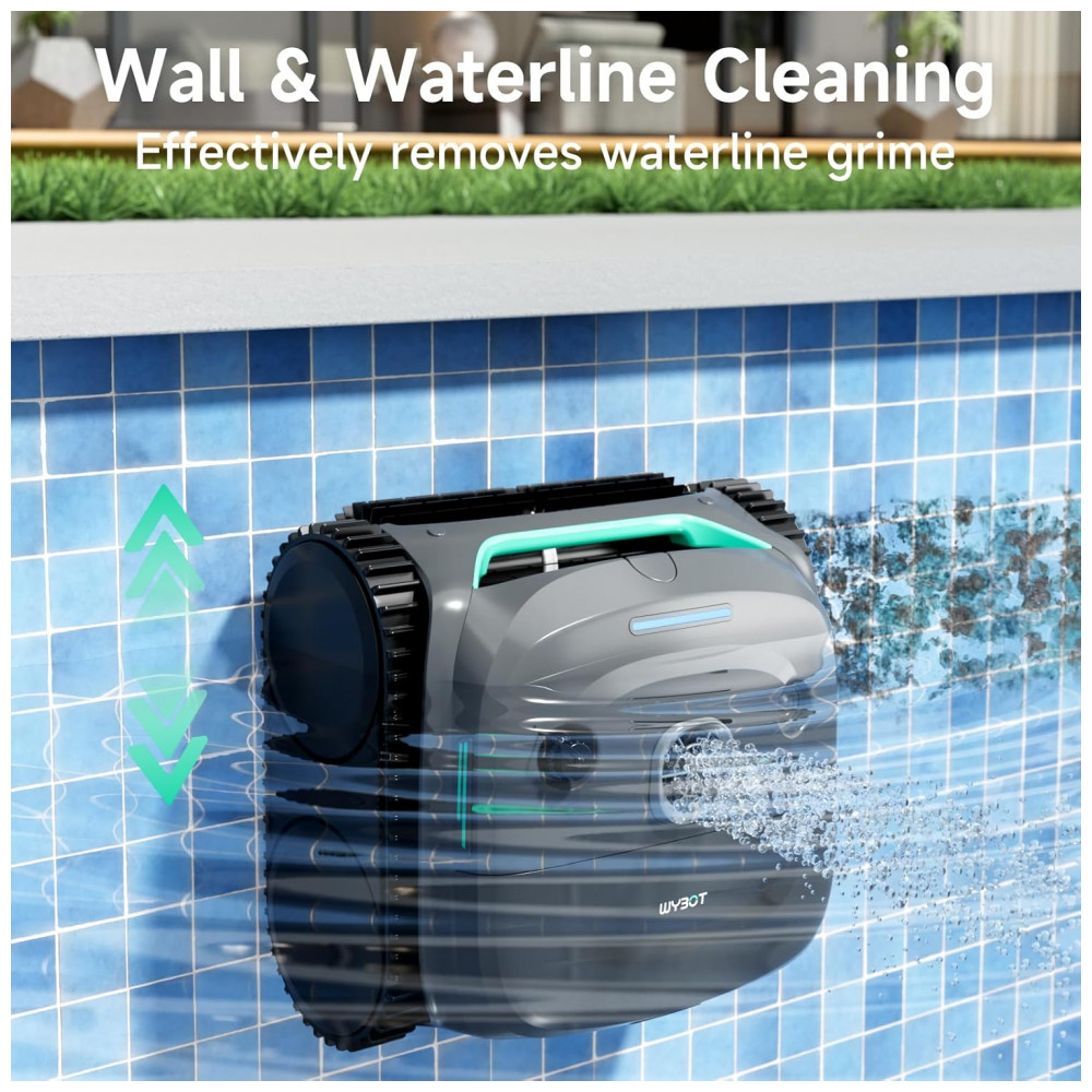 Aspirador Robótico para Piscinas WYBOT C2 Cinza Sistema de Filtração Dupla Ultra-fina Três Motores Sem Fio Modelo 2025