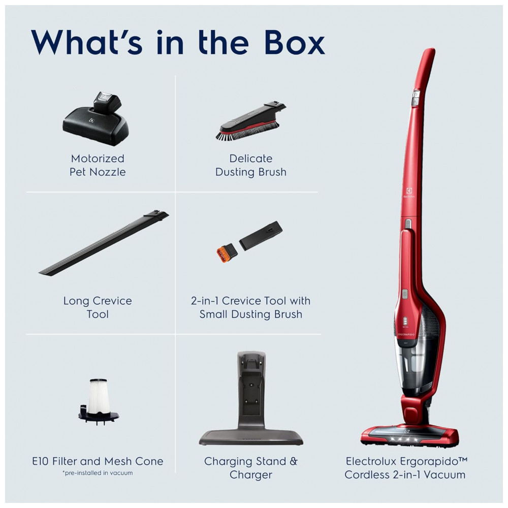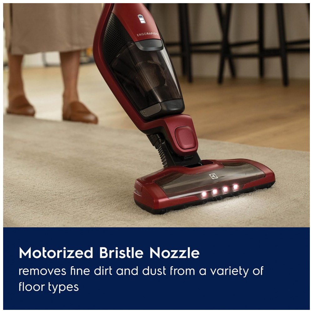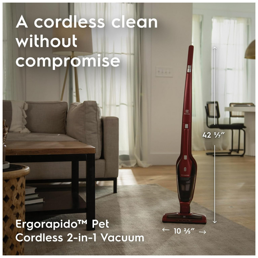 Aspirador Sem Fio 2-em-1 Electrolux Ergorapido Pet Vermelho Chili Motorizado 48 Minutos 18V.