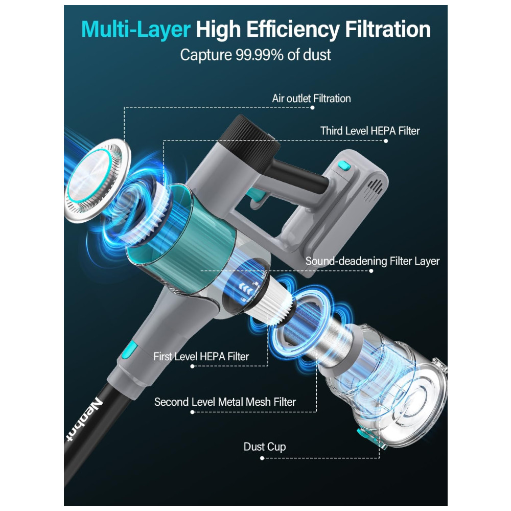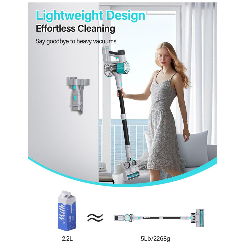 Aspirador sem fio 8 em 1: Leve 40 min autonomia Sucção Potente Anti-Emaranhado Ideal para Madeira e Carpetes 1200W.Neobot