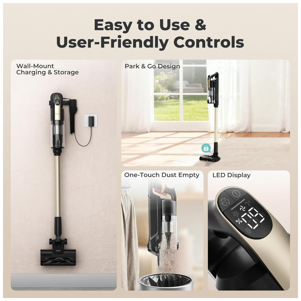 Aspirador Sem Fio Candy Dourado 190AW 65 Minutos LED Anti-Emaranhado Auto-Suportado CVS30 0.7L 110V