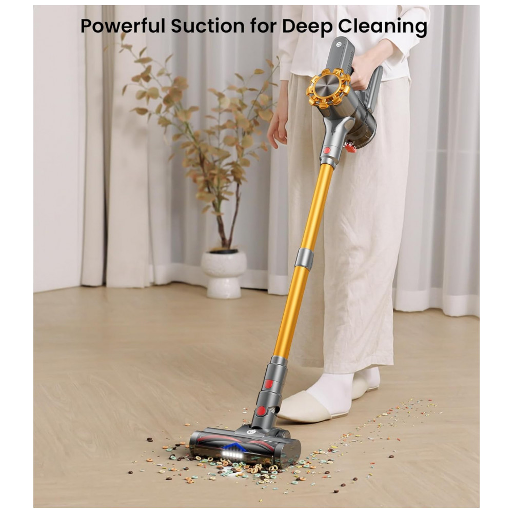 Aspirador Sem Fio CHEBIO Dourado 45kPa 8 em 1 LED Anti-Emaranhado 60 Minutos C8-US-NEW 1.5L 22.2V