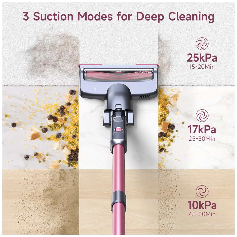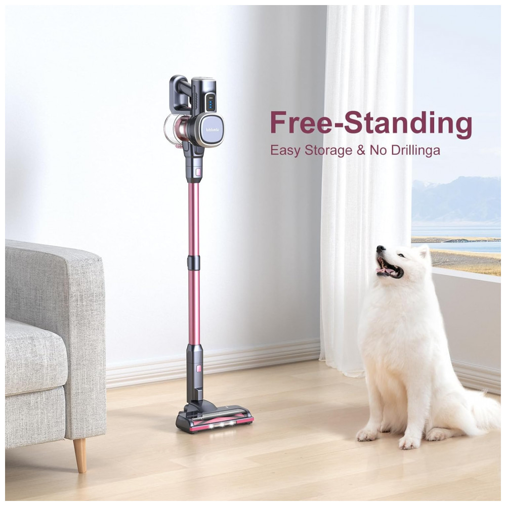 Aspirador Sem Fio Lubluelu GX-202CR-US Rosa Brushless 235W 25kPa Autoestável 50 Minutos 25.9V.