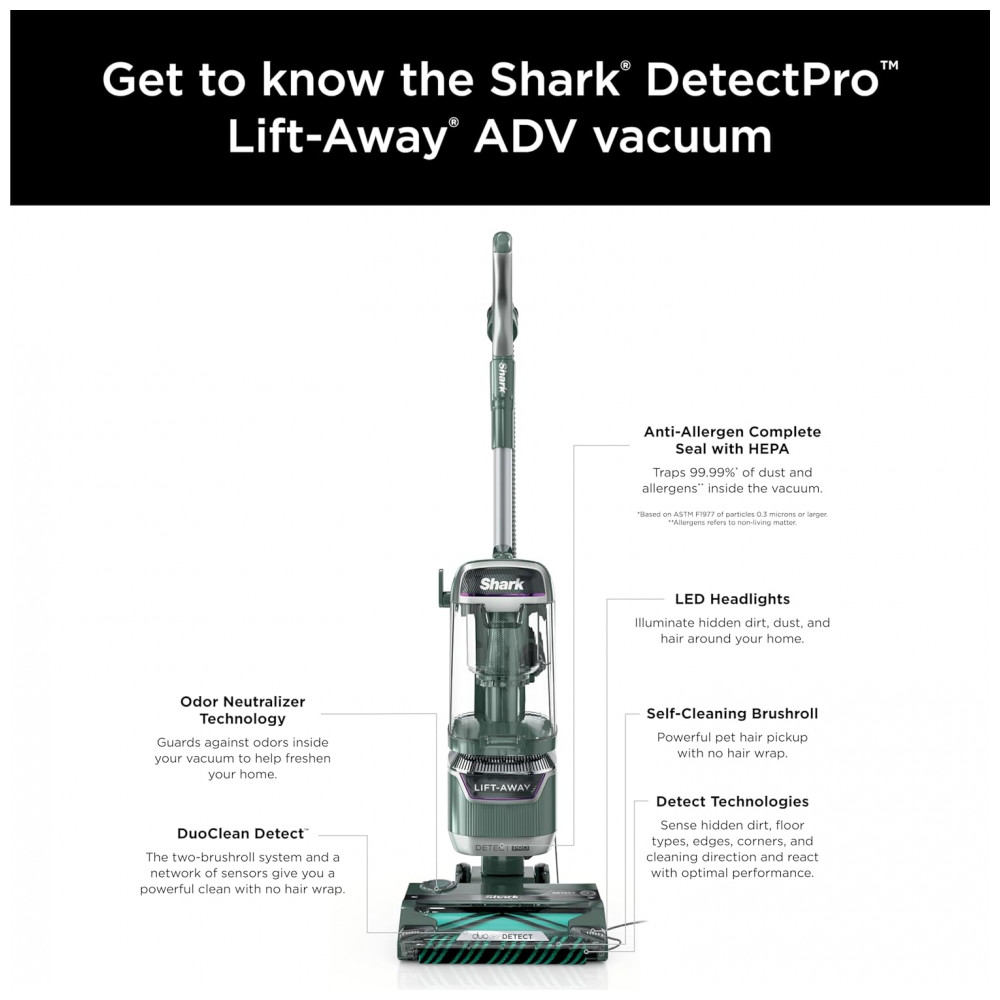 Aspirador Vertical Shark Detect Pro Lift-Away ADV LA802 Verde DuoClean Detect HEPA Sucção Poderosa 110V