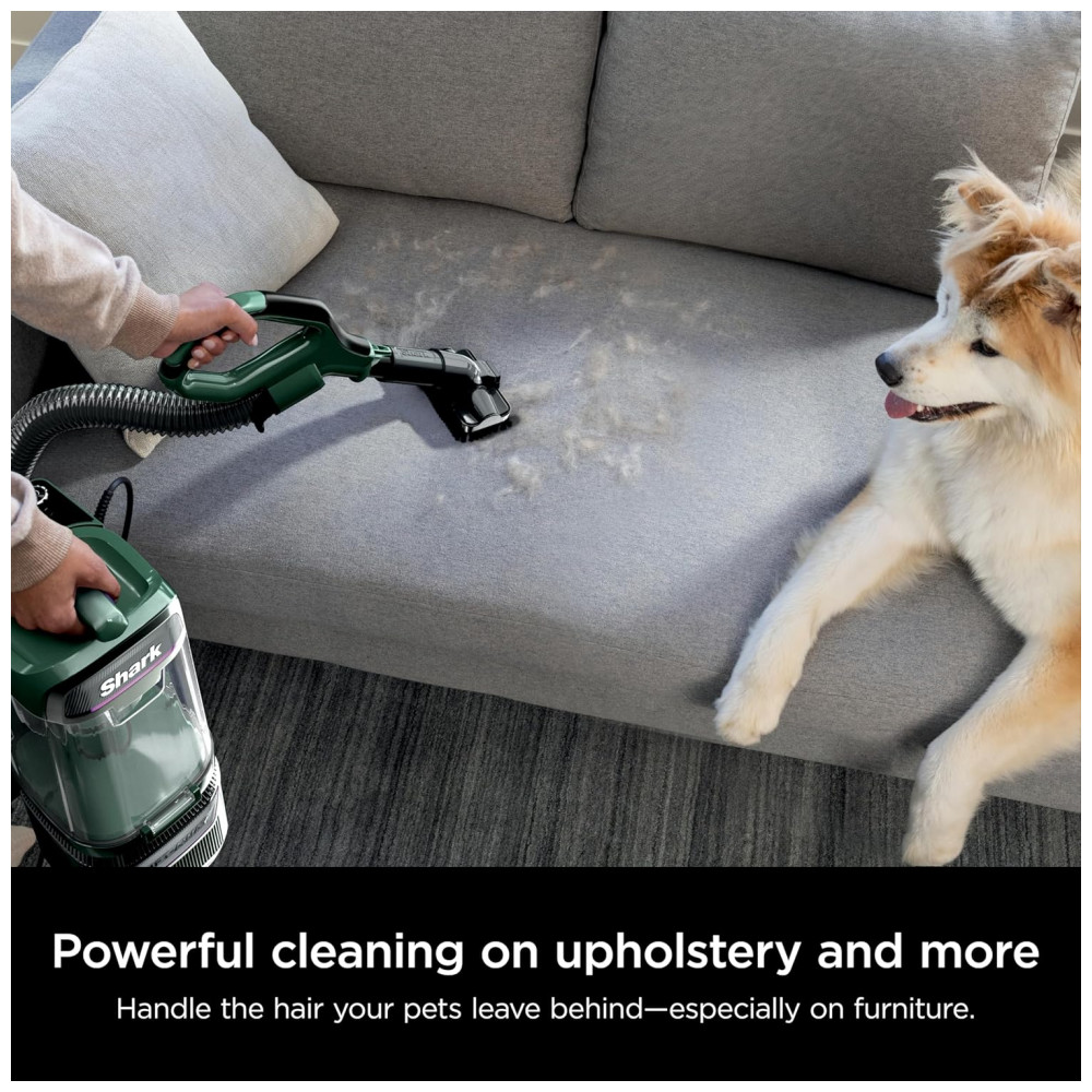 O design bagless permite remoção do pod Lift-Away para limpeza acima do piso, com neutralizador de odores via cartucho dedicado, faróis LED e 2 níveis de potência. Recomendado para todos os pisos e pelos de animais, inclui mangueira de 63,5 cm, com acabamento em verde evergreen e rodas para mobilidade indoor. Voltagem de 110 Volts garante operação corded estável em aspiradores upright Shark LA802.