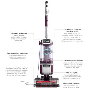 Aspirador Vertical Shark LA702 Rotator Pet LiftAway ADV com Tecnologia DuoClean PowerFins HairPro e Neutralizador de Odores Roxo Vinho com Sistema de Sucção Avançado
