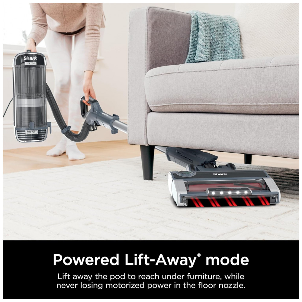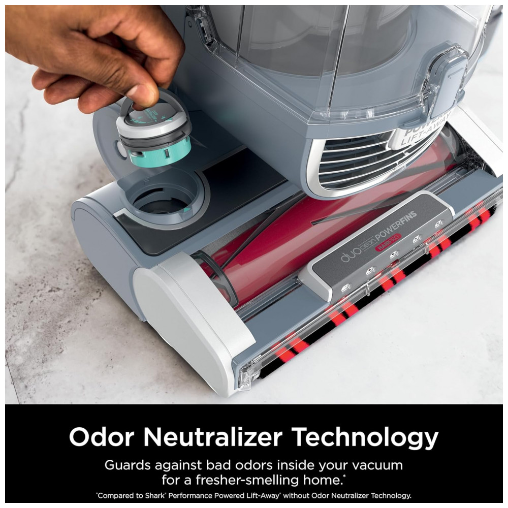 O aspirador vertical Shark Performance Powered Lift-Away UV2500 utiliza tecnologia Powered Lift-Away para separação do pod, permitindo limpeza motorizada sob móveis e em áreas elevadas. Sistema DuoClean PowerFins com dois rolos de escova atende carpetes e pisos duros, com tecnologia Odor Neutralizer para controle de odores internos e No Hair Wrap para captação de pelos sem emaranhamento. Adequado para limpeza de pisos, carpetes e superfícies internas em residências.