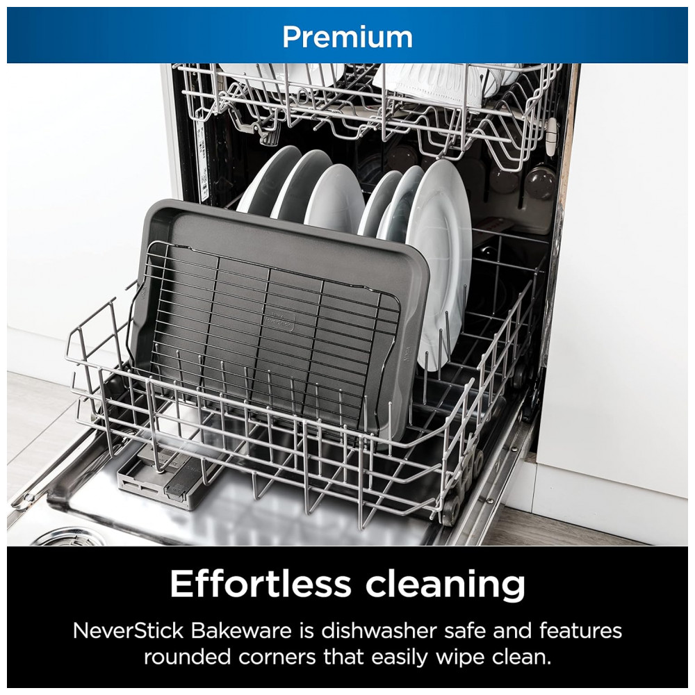 A limpeza é fácil, pois estas assadeiras são seguras para lava-louças e apresentam cantos arredondados que facilitam a limpeza. As bordas largas e ergonômicas oferecem uma pegada confortável, tornando-as fáceis de manusear com pegadores de panela ou luvas de forno.
