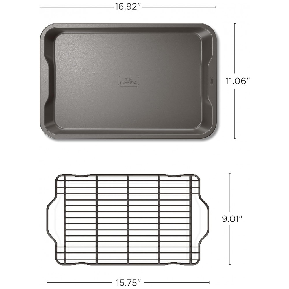 O que está incluído: Assadeira de 25×38 cm e Grade de Resfriamento/Assar de 25×38 cm.