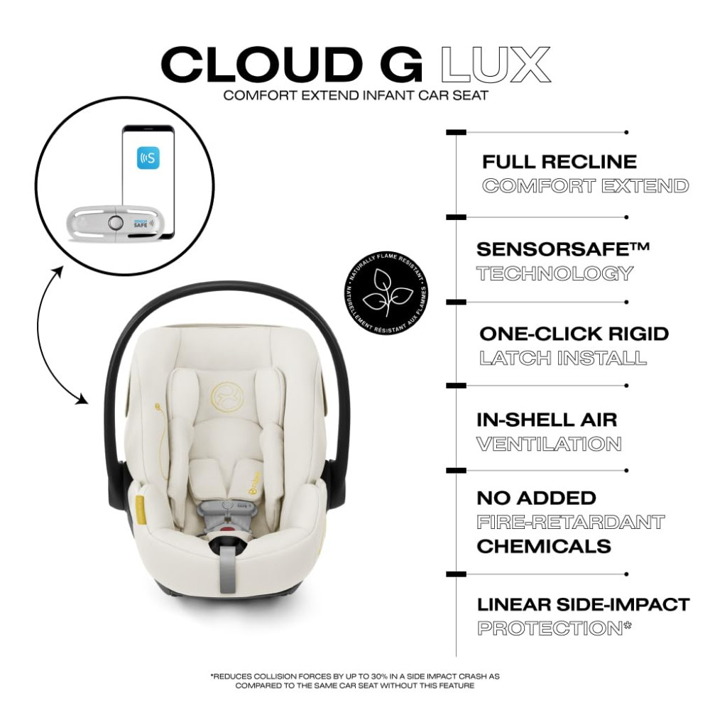 Assento Automotivo para Bebê Cybex Cloud G Comfort Extend com Base Anti-Rebote e Proteção Lateral Linear Instalação LATCH e Reclinável Total – Segurança Máxima