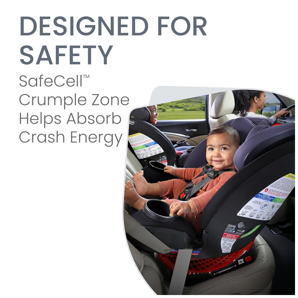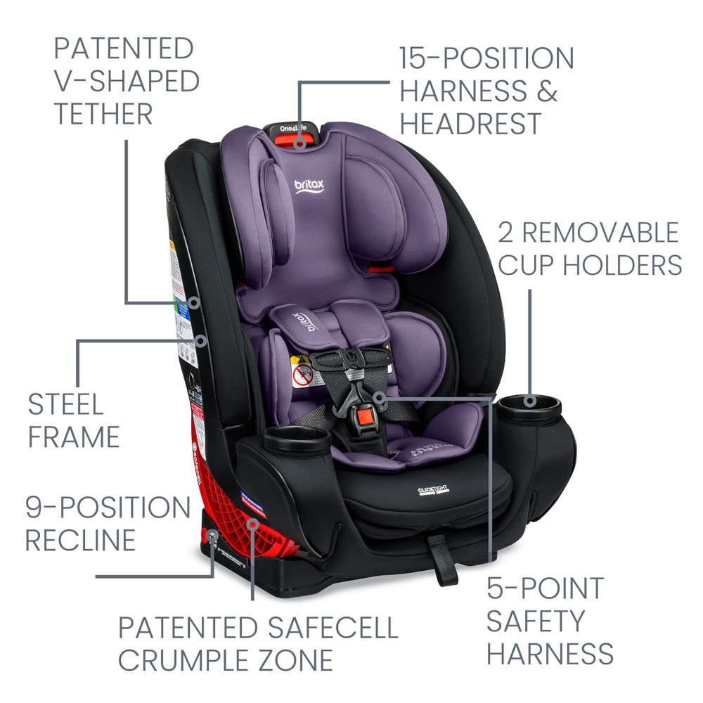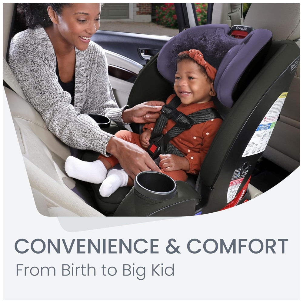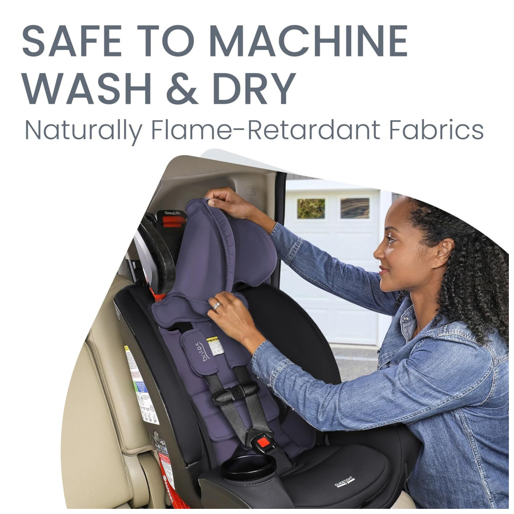 Aproveite viagens seguras do nascimento até a fase infantil com a cadeirinha de carro 4 em 1 Britax One4Life. Este assento de carro possui 4 configurações, incluindo cadeirinha de bebê encarando para trás, cadeirinha de criança encarando para trás, cadeirinha com cinto de 5 pontos encarando para frente e assento elevatório encarando para frente. Comece com a cadeirinha de bebê encarando para trás para os mais pequenos, depois passe para a cadeirinha encarando para frente e assento elevatório para pré-escolares e crianças maiores. A tecnologia ClickTight facilita a instalação da sua nova cadeirinha com confiança. Basta abrir o assento, passar o cinto de segurança, travá-lo e fechar o assento. A cadeirinha One4Life é equipada com um quadro de aço de alta resistência, zona de deformação SafeCell e uma amarra patenteada em forma de V. A concha protetora e o apoio de cabeça com espuma ajudam a absorver a energia do impacto para manter a cabeça, pescoço e corpo da criança seguros. Ajuste o apoio de cabeça de 15 posições e o cinto sem precisar de rosqueamento, garantindo um encaixe seguro em segundos. Alterne facilmente entre 9 posições de reclinação e utilize os indicadores de nível de leitura fácil para encontrar o ângulo correto. A Britax One4Life vem com uma capa removível fácil de lavar na máquina, e a construção em malha é naturalmente retardante de chamas.