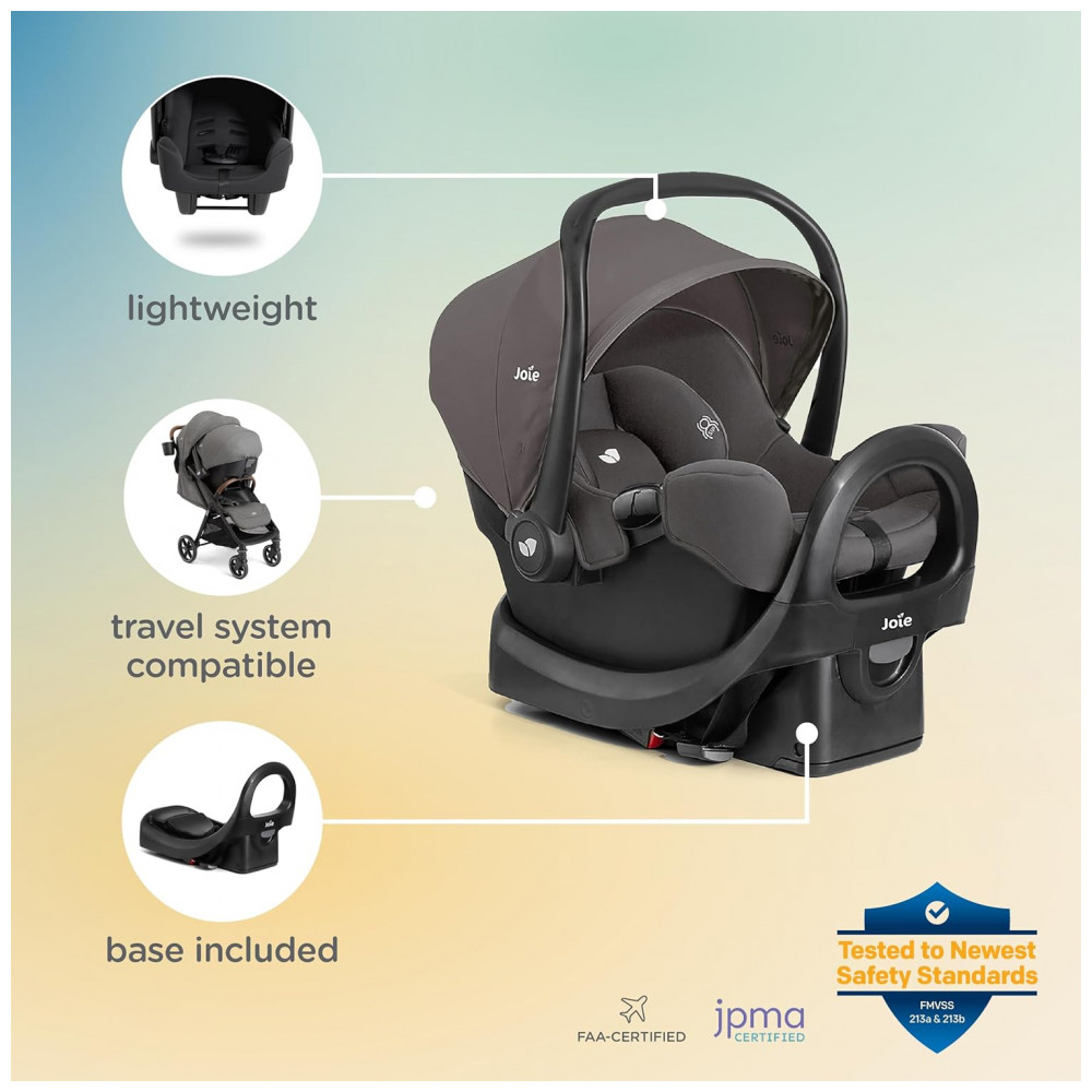 Assento de Carro Infantil Joie Rue Leve com Base Anti-Rebote Proteção Lateral contra Impactos Arnês de 5 Pontos e Cobertura UPF 50 para Recém-Nascido