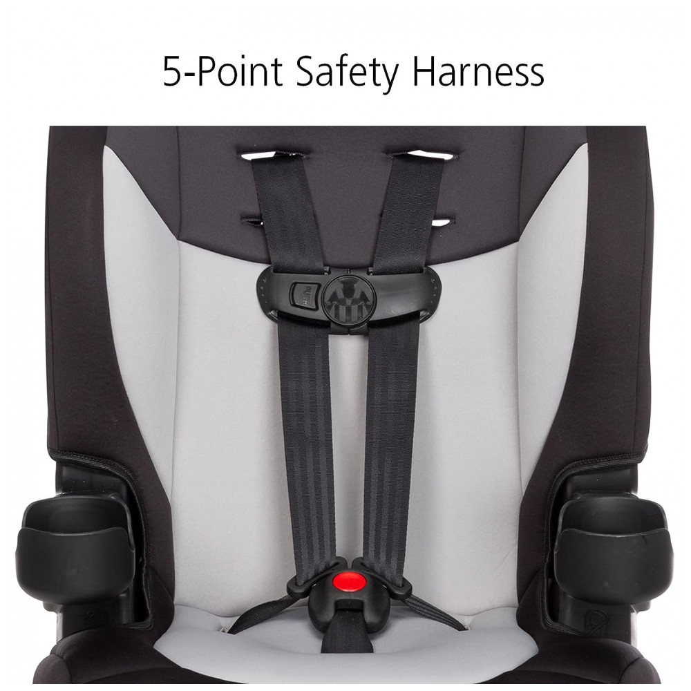 O ajuste frontal do arnês de 5 pontos facilita a entrada e saída da criança do assento.