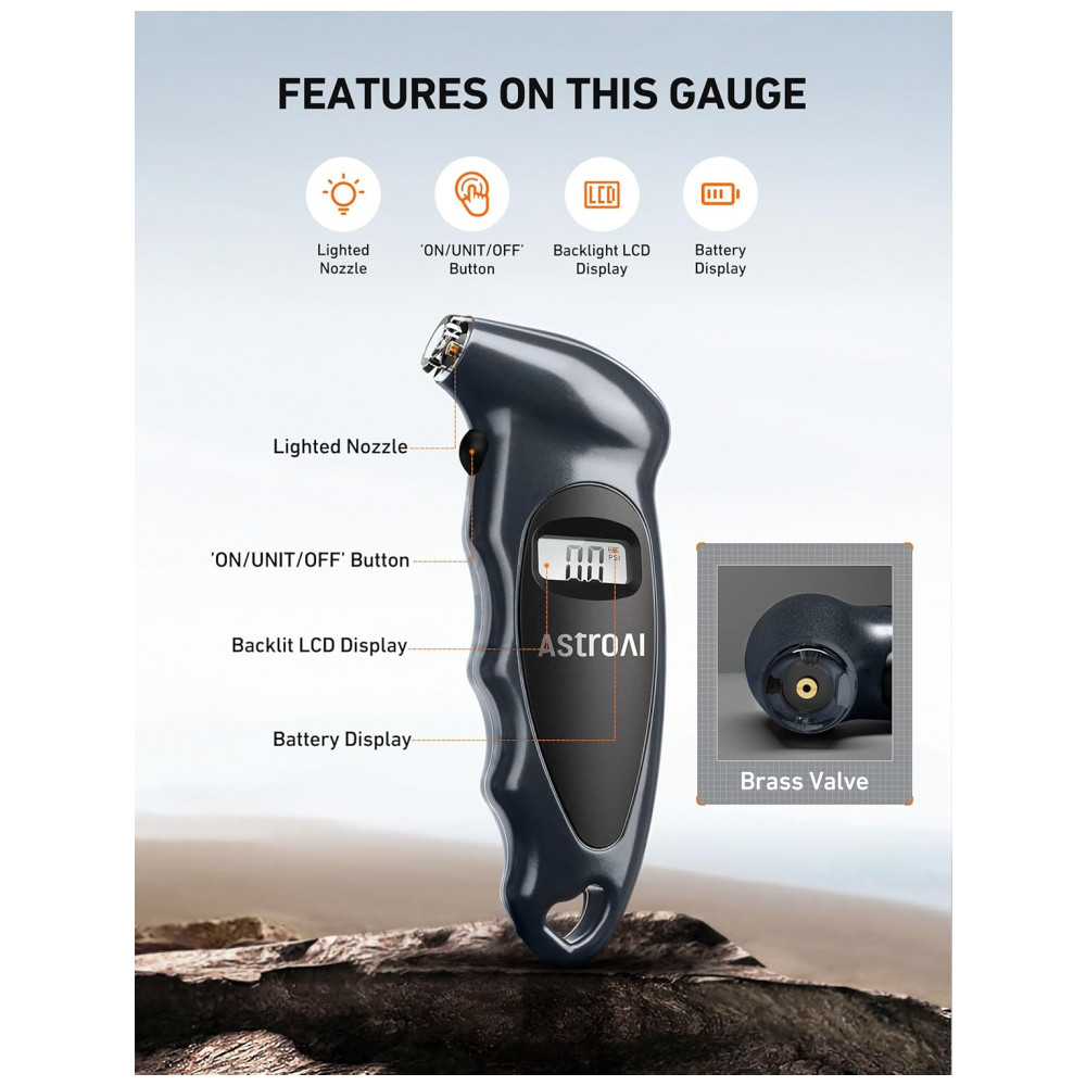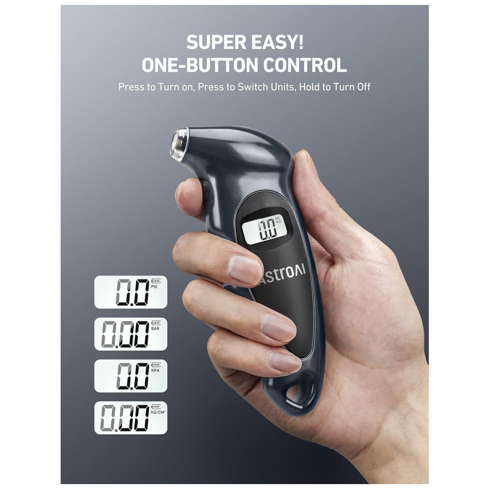 AstroAI Medidor Digital de Pressão de Pneus com Bateria AAA Substituível 150 PSI 4 Configurações Presentes para Carro Caminhão Bicicleta Display
