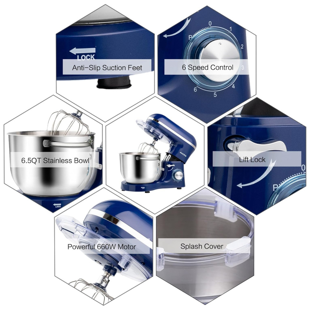 Aucma Batedeira 6 Velocidades 6 Litros 660W Azul 110V