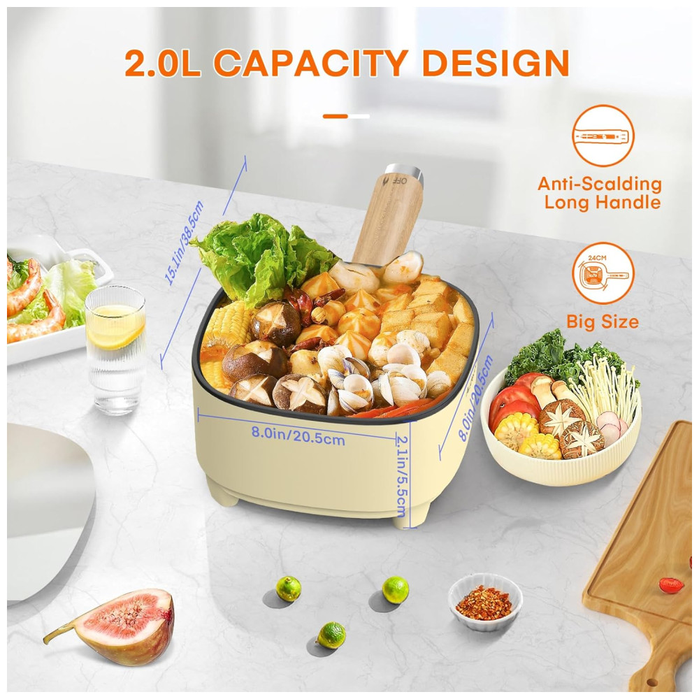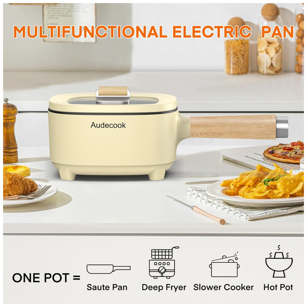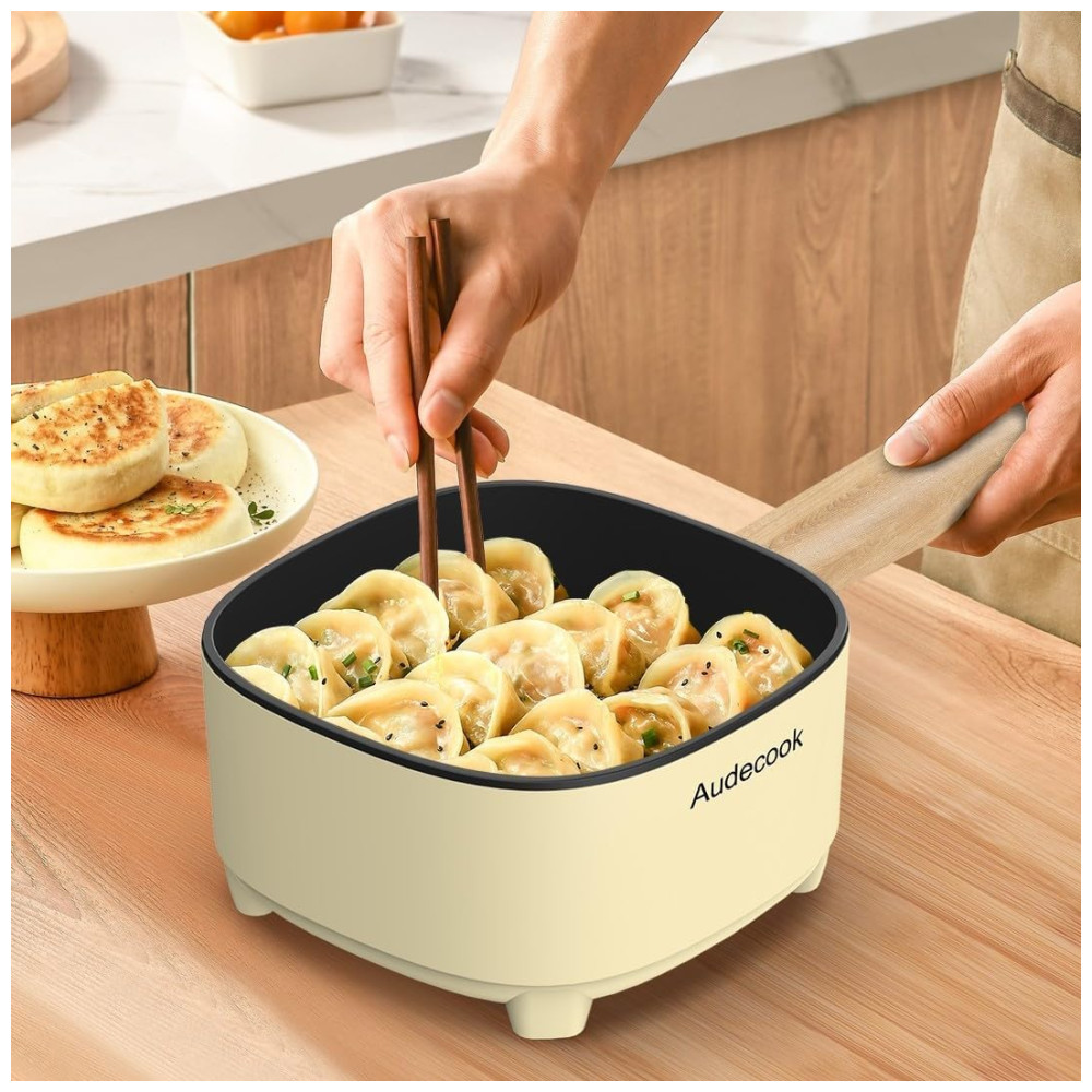 Audecook Hot Pot Electric 2L e Frigideira Antiaderente de Cerâmica 8 Polegadas – Cooker Portátil para Macarrão Bife Arroz Frito Aveia e Sopa