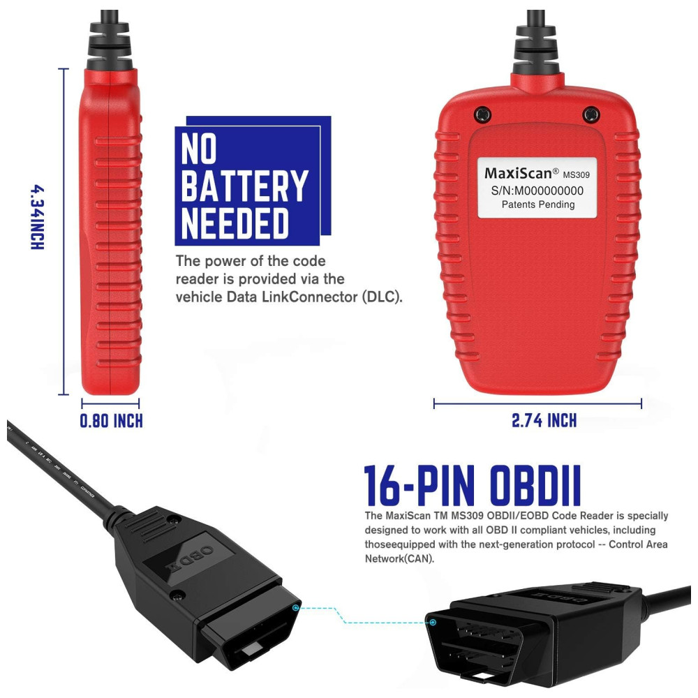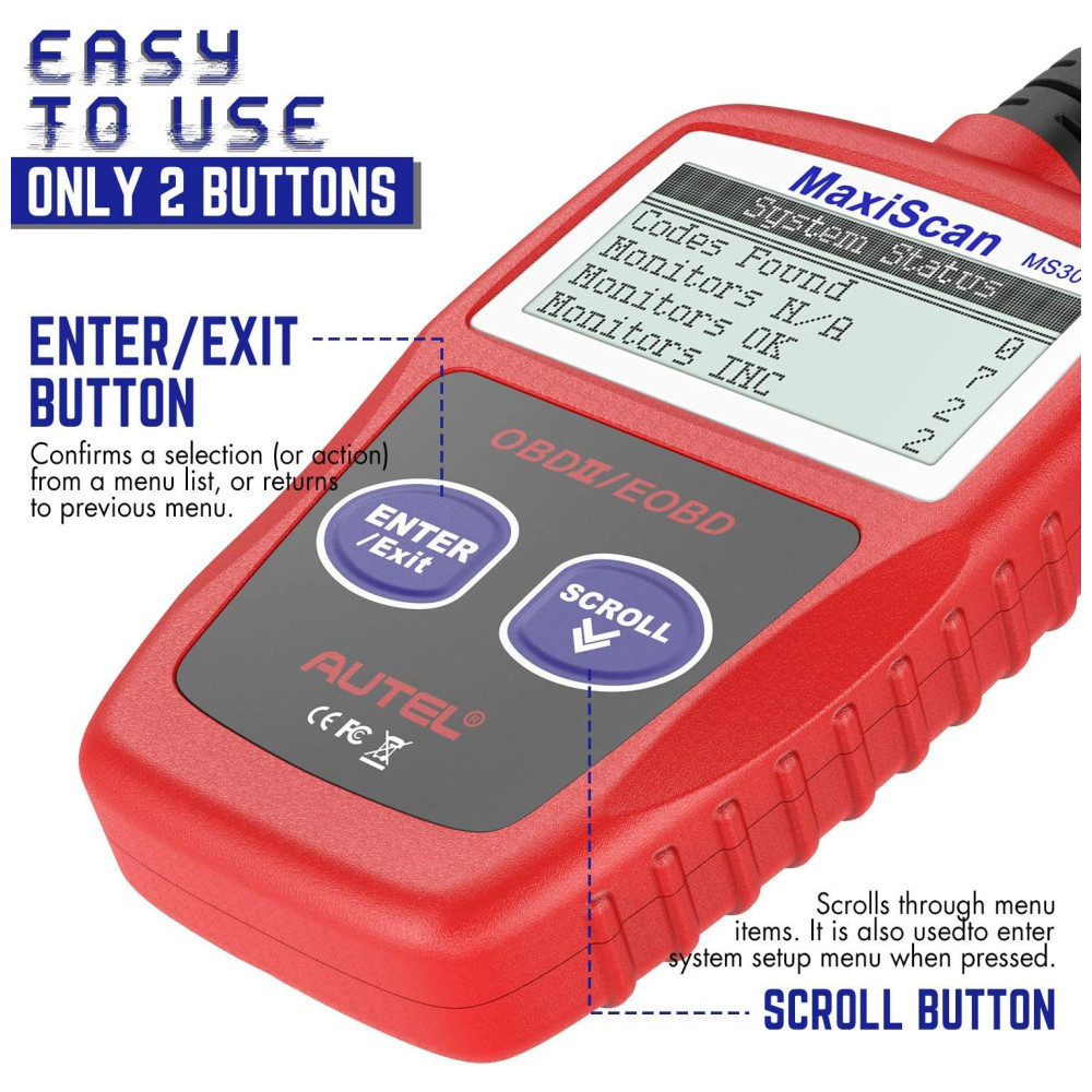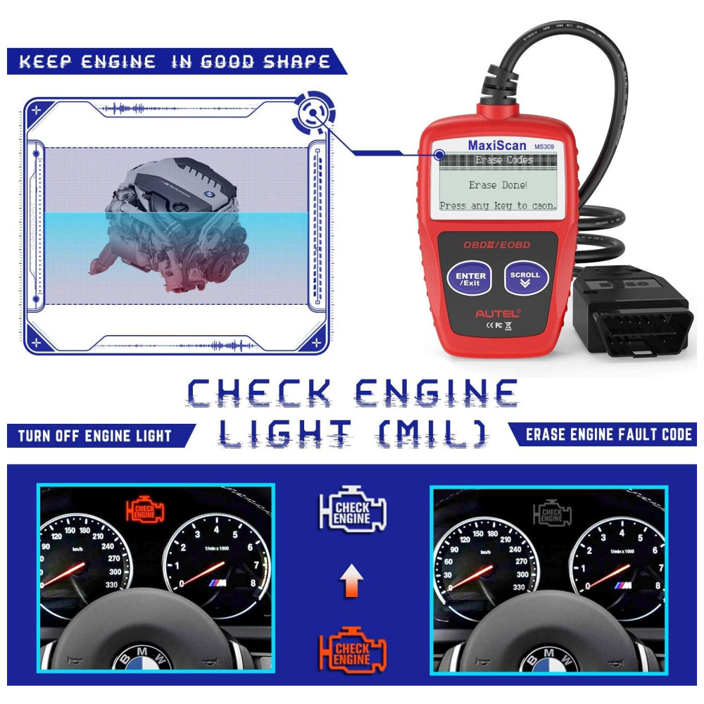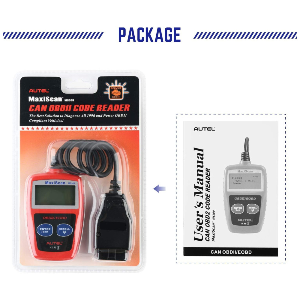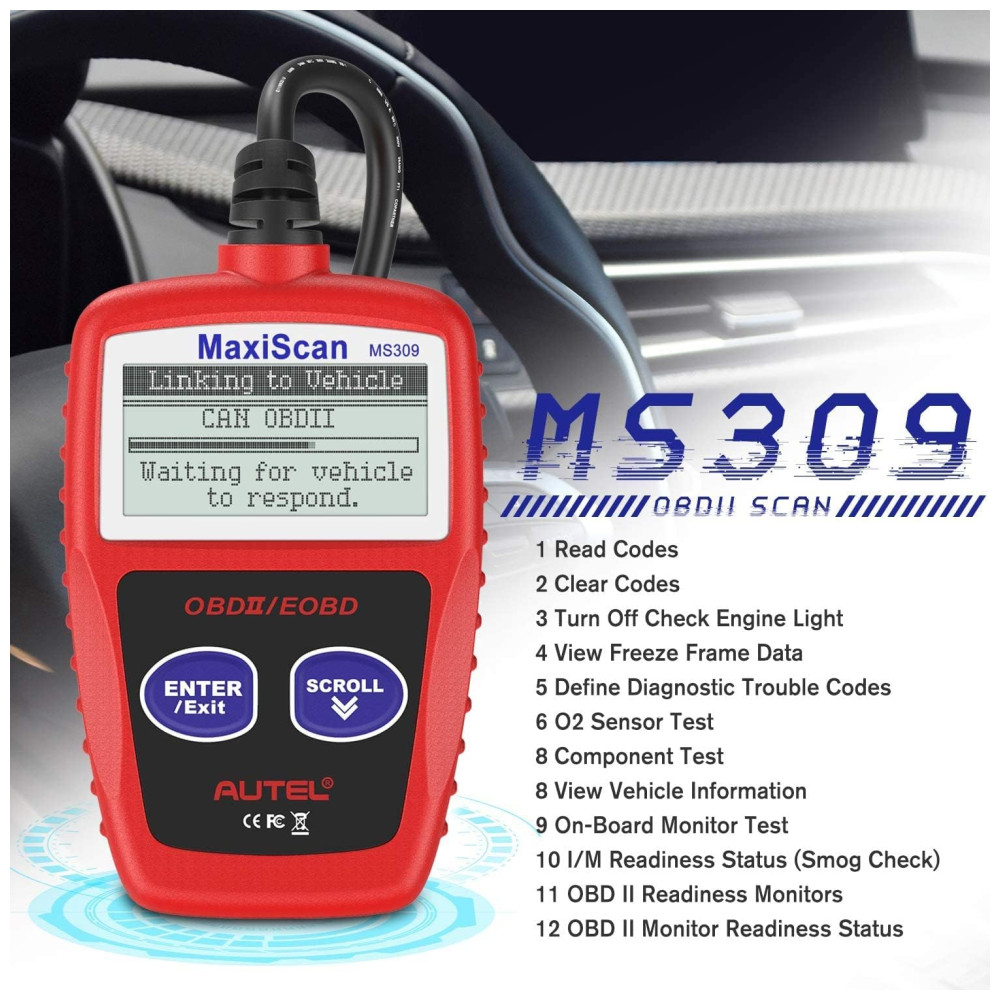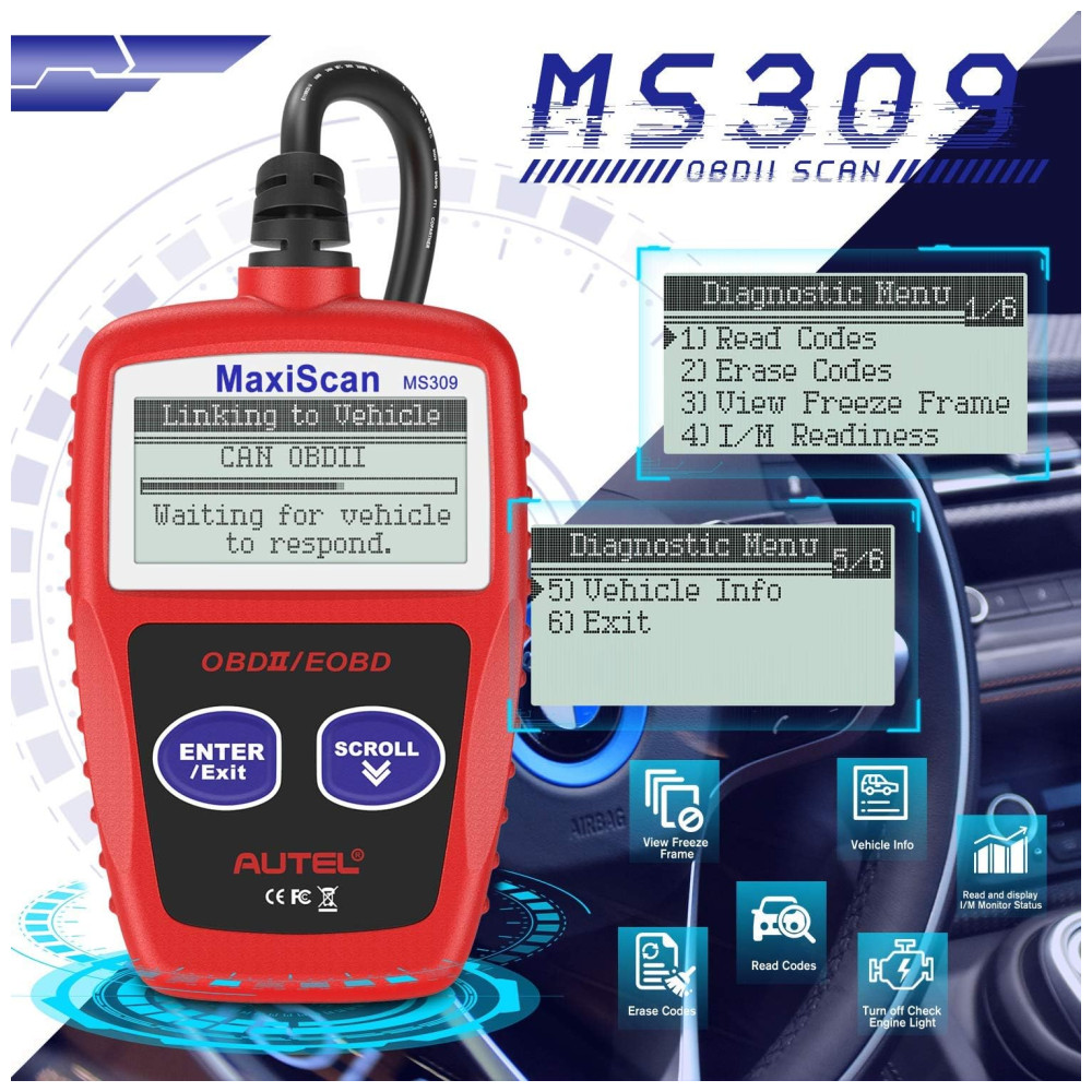 Autel OBD2 Scanner MS309: Leitor de Códigos de Falha para Carros Universais Monitor de Luz do Motor e Status de Emissões