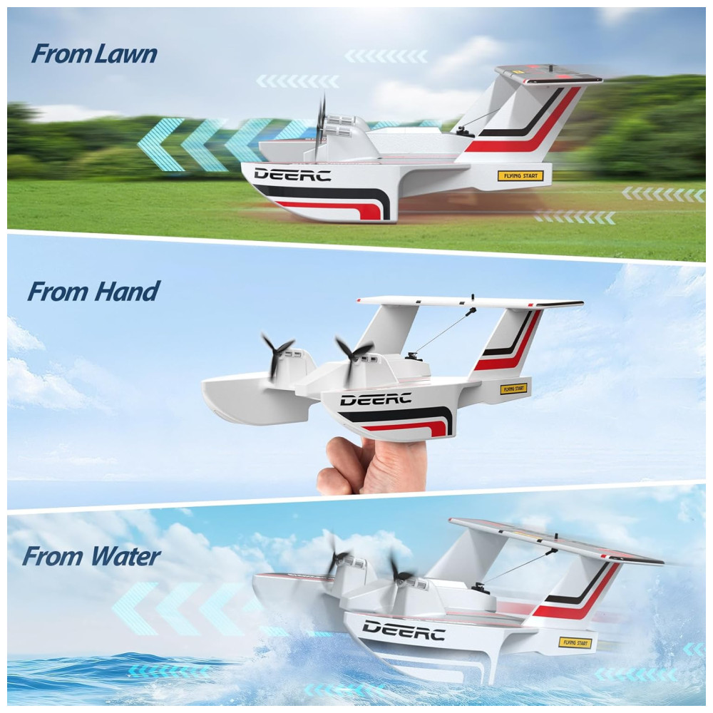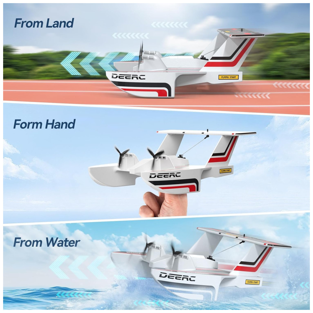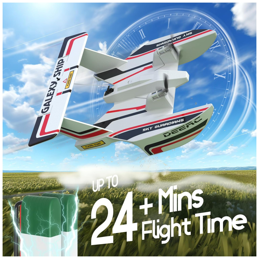 Avião de Controle Remoto 3 em 1 com 2 Baterias e Planador de Avião RTF de 24 GHz DEERC RC Branco