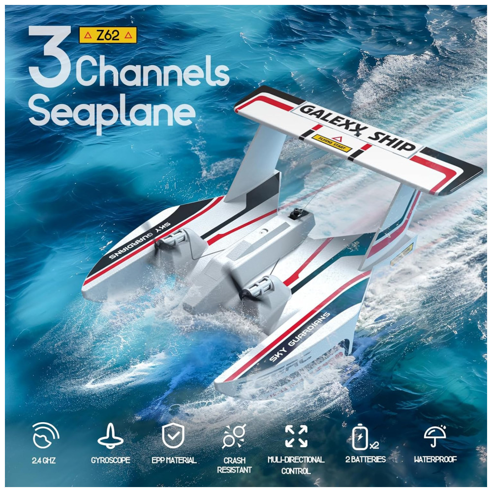 3 CANAIS E MAIS DE 24 MINUTOS DE TEMPO DE VÔO: Avião RC Z62 de 3 canais com versatilidade impressionante, capaz de deslizar perfeitamente tanto na água quanto na terra. Ele pode manobrar habilmente, virando para a esquerda e para a direita com precisão. Uma vez no ar, o hidroavião mostra suas proezas aéreas, subindo e descendo e permitindo curvas suaves para a esquerda e para a direita no meio do vôo. Juntamente com duas baterias, os pilotos podem desfrutar de mais de 24 minutos de voo, permitindo ampla exploração e diversão.