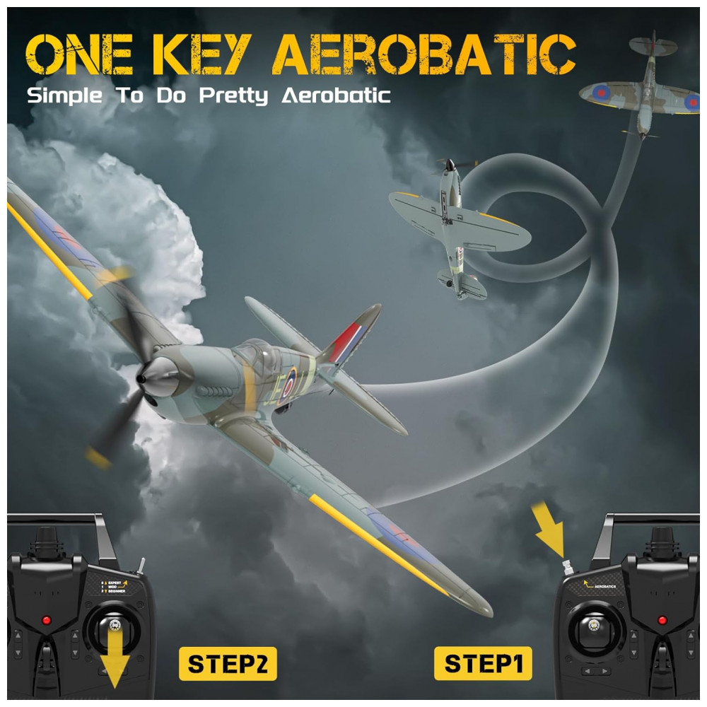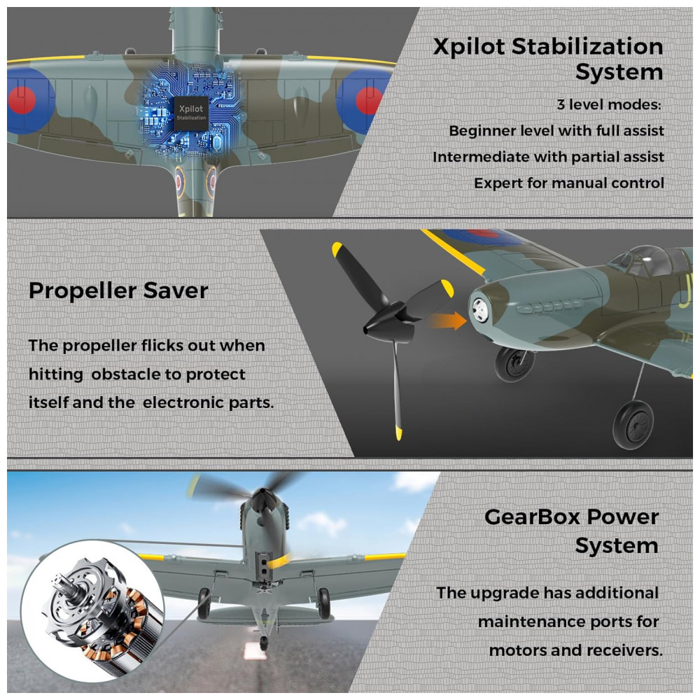 Plano Spitfire RC: O avião rc VOLANTEXRC de 4 canais vem com estabilizador giroscópio Xpilot e poderoso sistema de engrenagem motorizada, muito amigável para iniciantes também. O avião RC é feito de espuma de elastômero leve e adequado para voar ao ar livre.