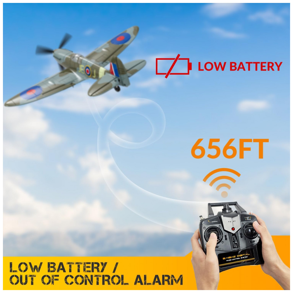 Muito tempo para voar: O avião de controle remoto de 4 canais está equipado com 2 baterias recarregáveis, e a maior distância de vôo deste avião RC é de 656 pés. A aeronave RC atualizada terá um lembrete quando a bateria estiver fraca.