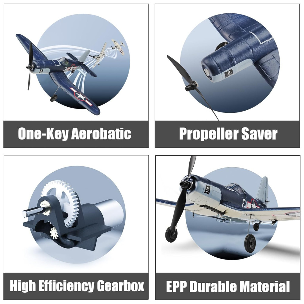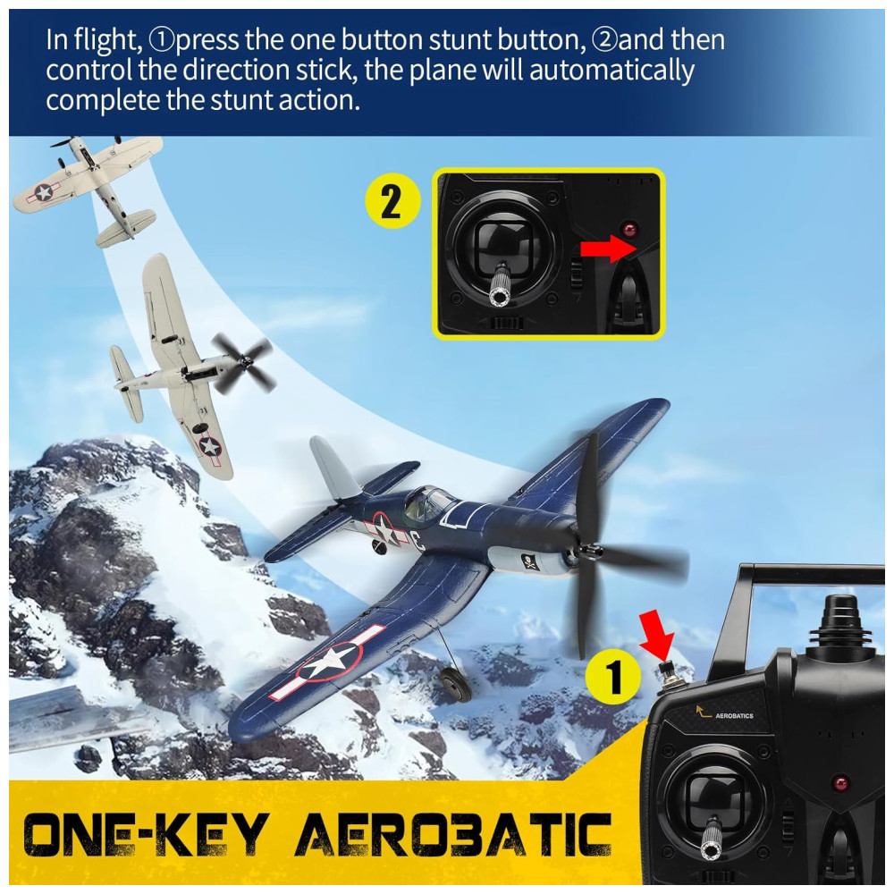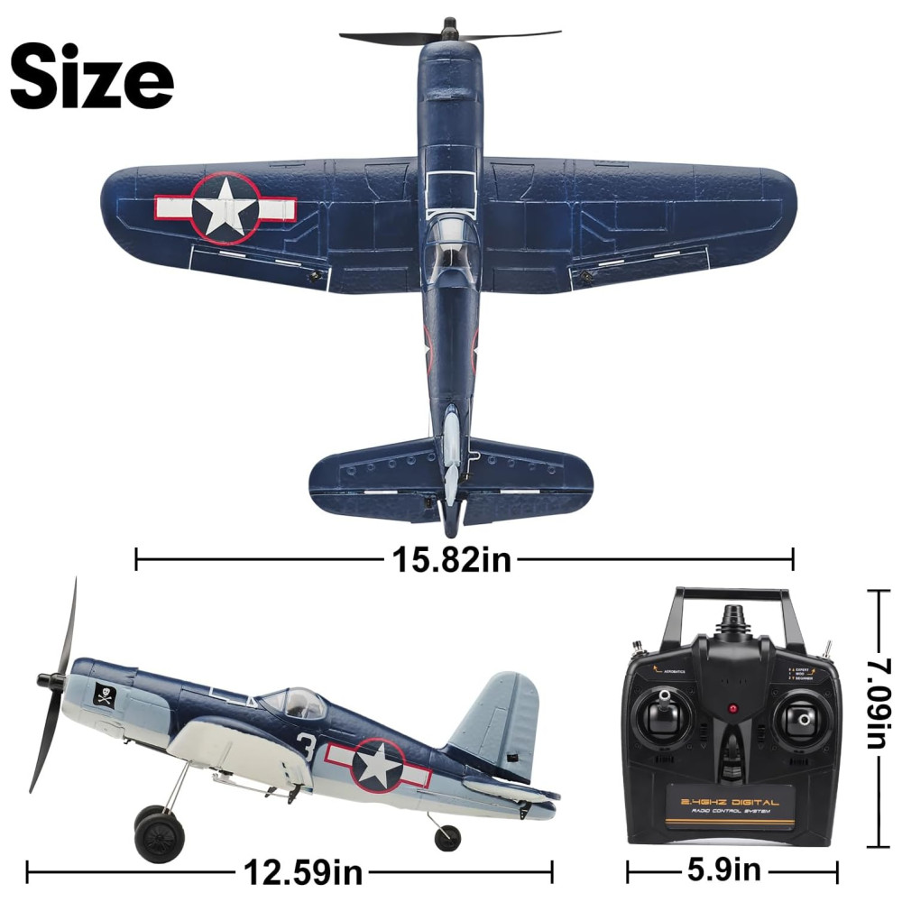 Avião de Controle Remoto com Acessórios Sistema de Estabilização Xpilot e One Key Acrobático RoofWorld F4u Corsário 76108 Azul Escuro