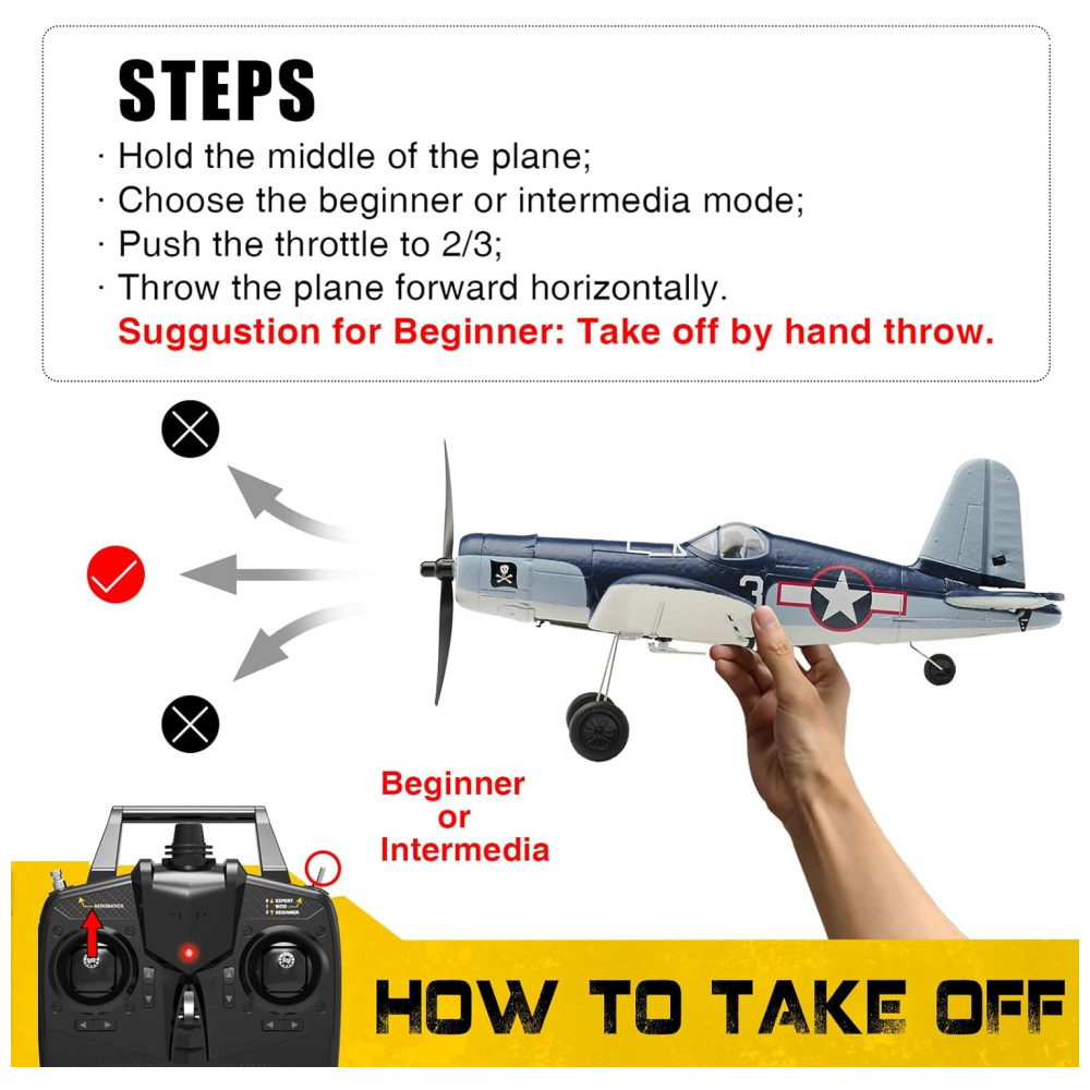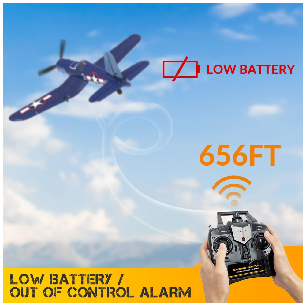 Avião FHSS RC de 2,4 GHz: A tecnologia FHSS RC de 2,4 GHz permite que mais de 20 aeronaves voem ao mesmo tempo e voem até 656 pés, a forte capacidade anti-interferência permite realizar uma pequena festa do clube de vôo entre você e seus amigos.