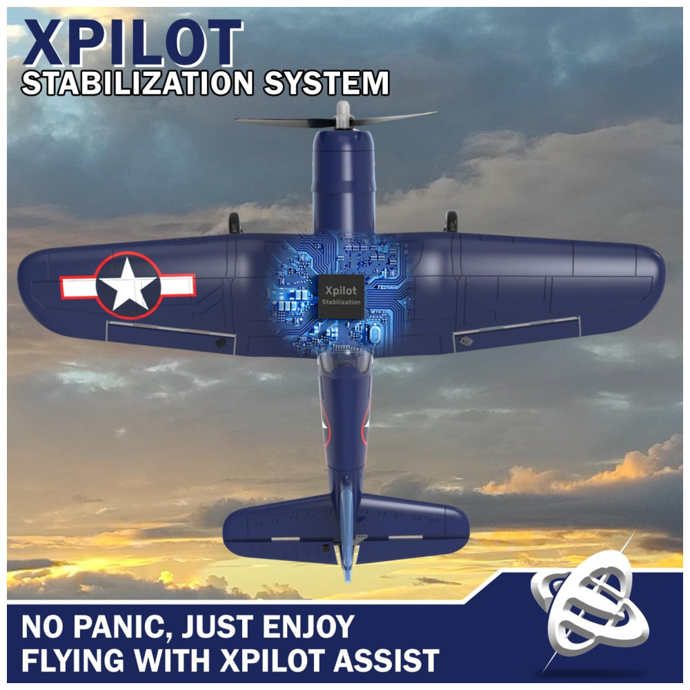 Avião de Controle Remoto com Tecla Acrobática para Crianças e Adultos LEAMBE F4U Corsair Azul
