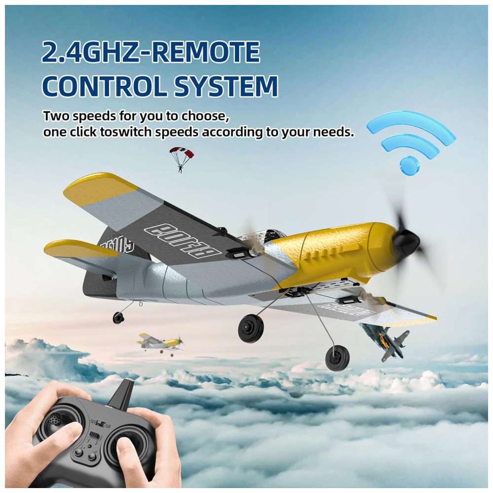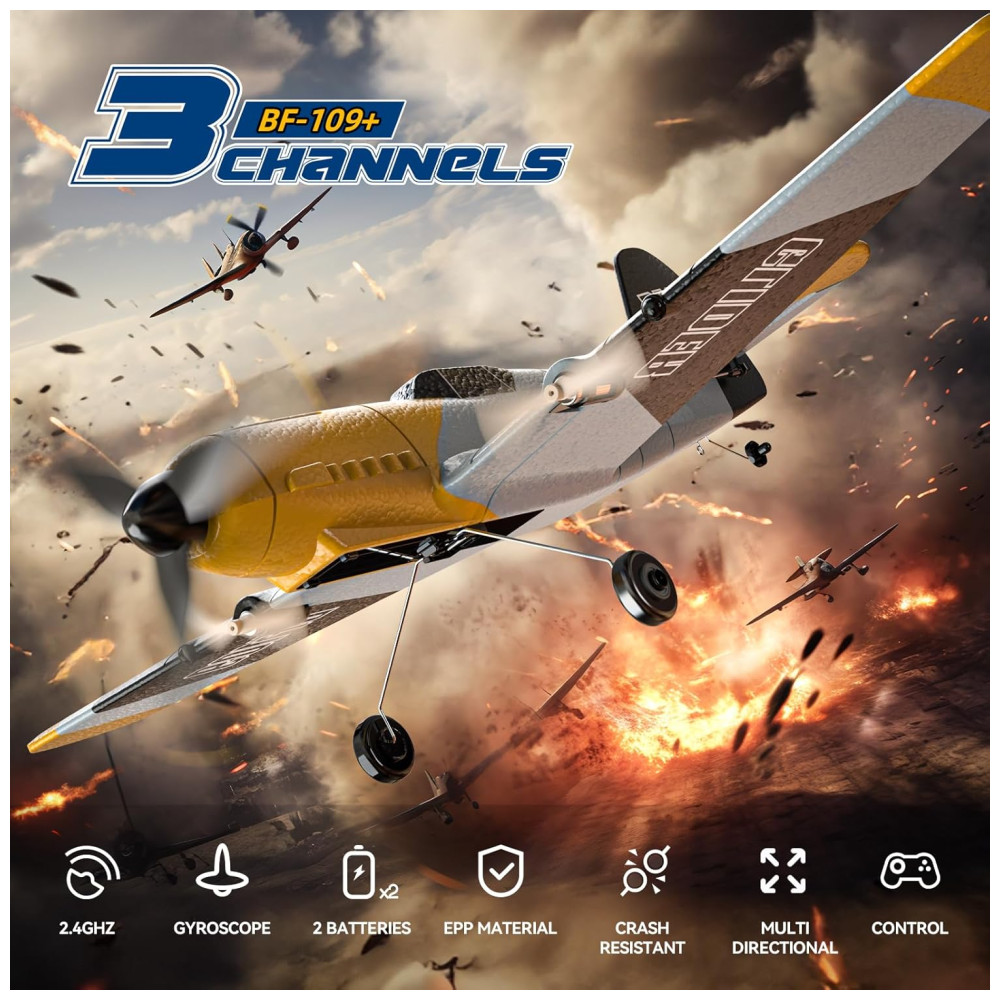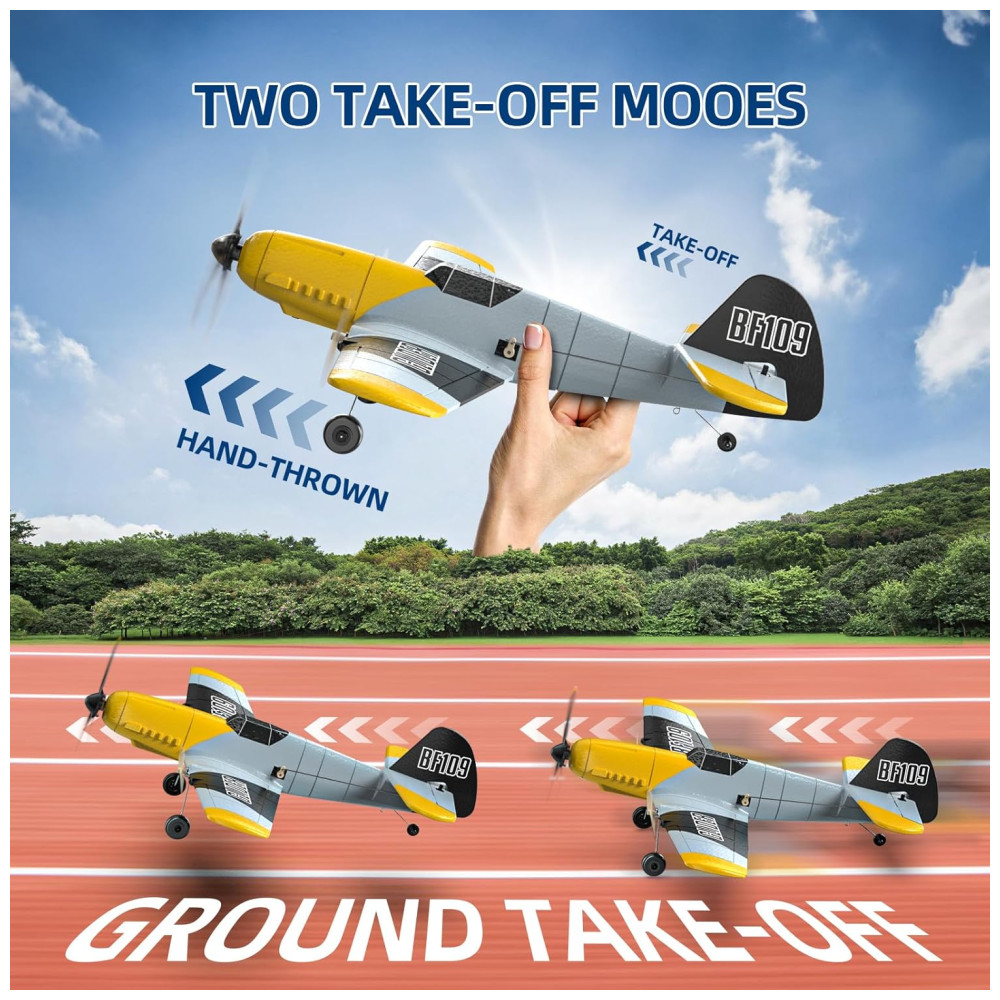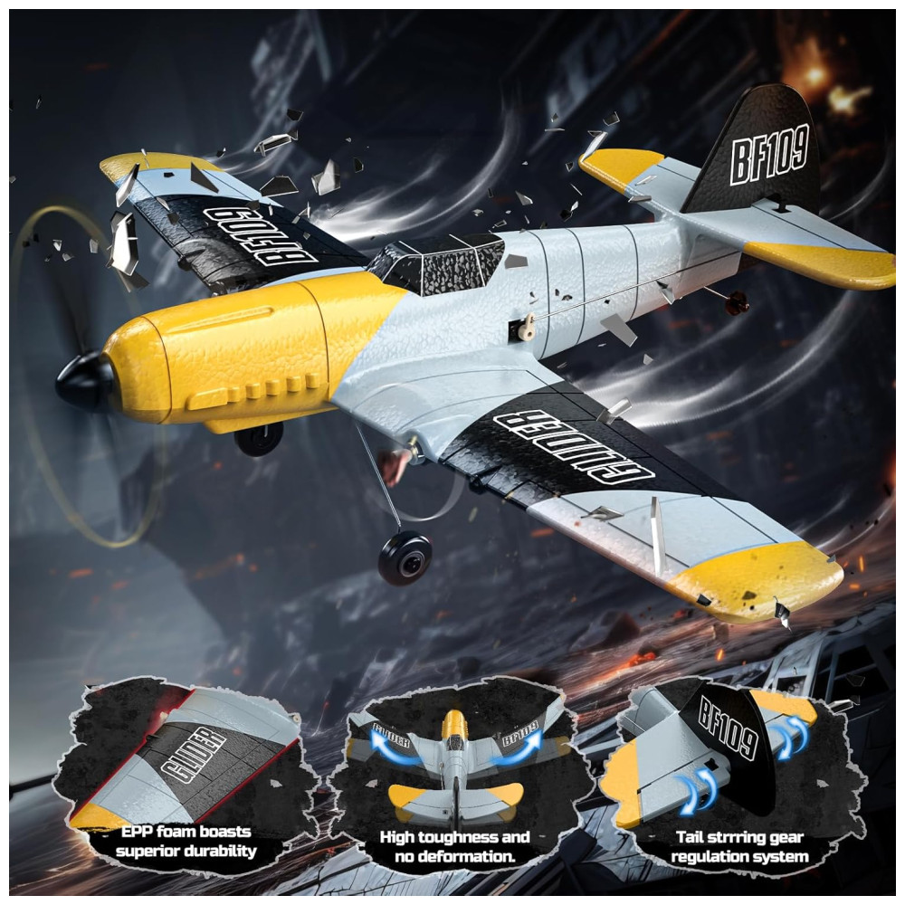 Avião de Controle Remoto de 3 Canais com Estabilizador Giroscópio de 6 Eixos 2 Métodos de Decolagem e Acessórios DEERC BF-109 Colorido