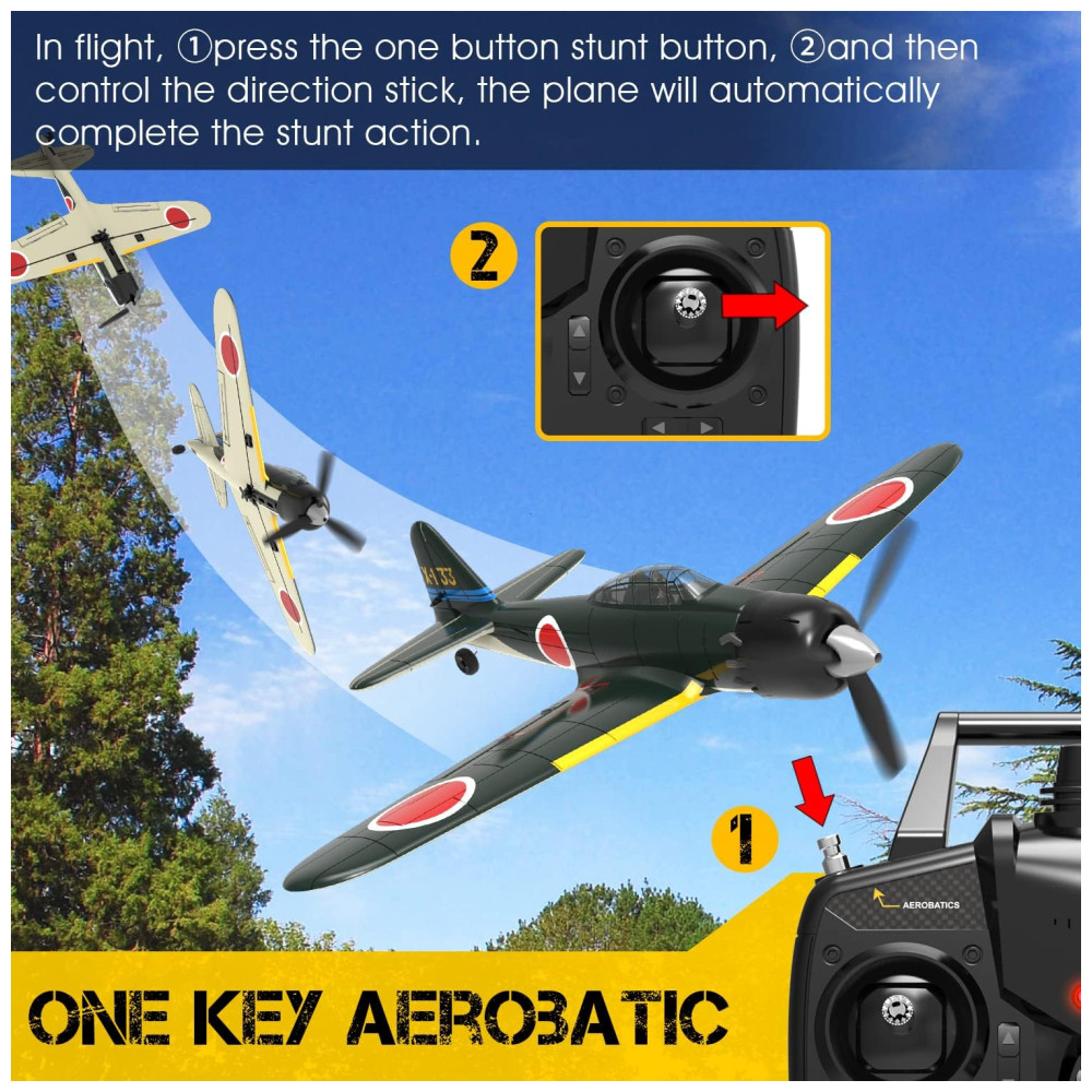 Graças à nova tecnologia de proteção de hélice, este avião é resistente e durável, protegendo as hélices substituíveis contra danos. Construído com espuma EPP durável e hastes de fibra de carbono, é seguro e robusto o suficiente para todos os pilotos. A função Aerobatics 4CH permite realizar uma variedade de acrobacias com facilidade, enquanto a função Onekey U-turn permite que o avião retorne automaticamente, eliminando preocupações com perdas.