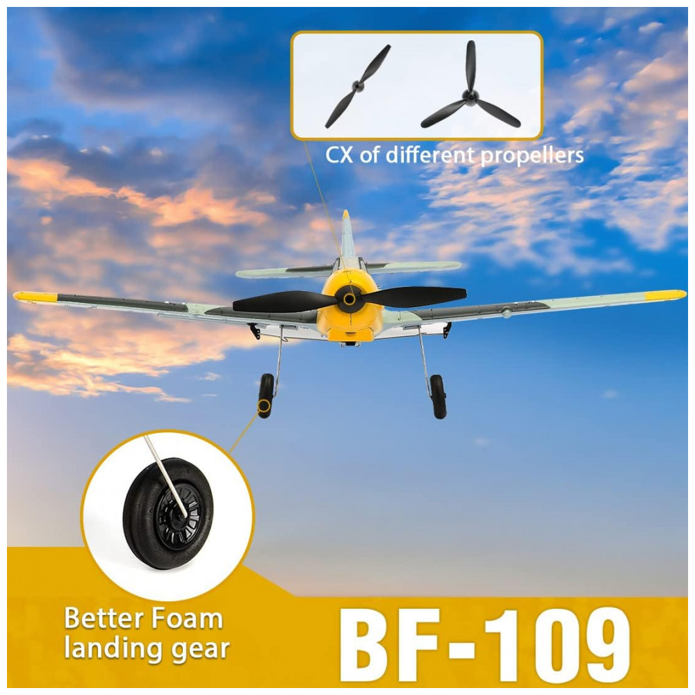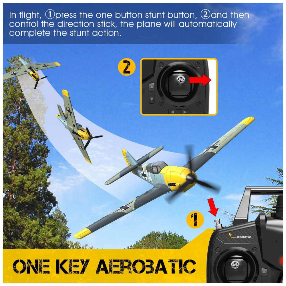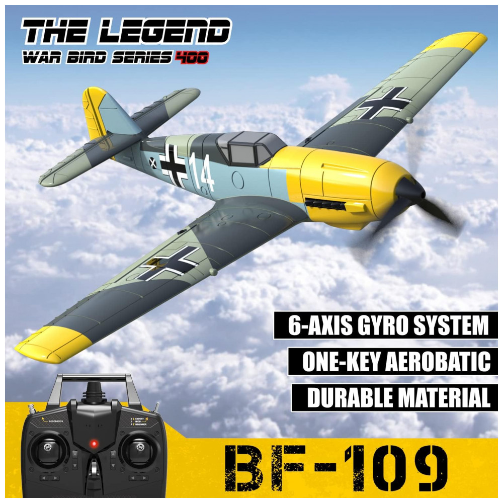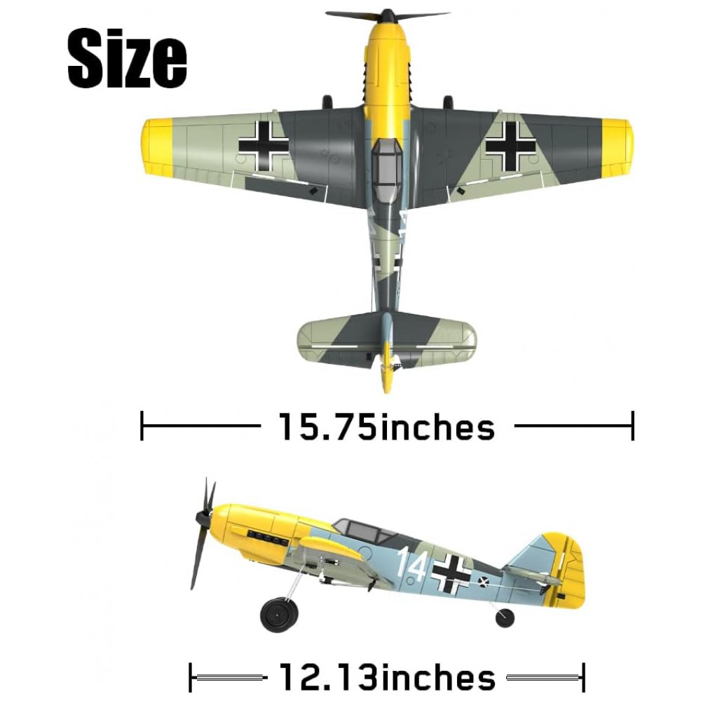 Avião de Controle Remoto para Crianças e Adultos RoofWorld BF109 Amarelo e Verde