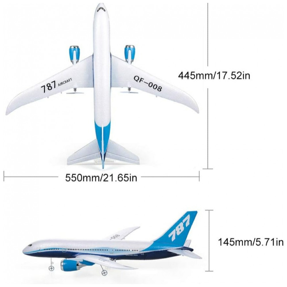 Alto Grau de Autenticidade: Este avião é projetado com base no mais recente gigante airbus 787, apresentando uma superfície perfeitamente lisa e detalhes requintados para alcançar um alto grau de autenticidade. Design de 3 Canais: Inclui um canal para controlar virar à esquerda e à direita, um canal para controle de decolagem e pouso, e um canal para controlar a aceleração da aeronave. Gyro de 6 Eixos: Sistema de controle de voo de 6 eixos com sensibilidade de giro ajustável garante mais estabilidade para iniciantes dominarem facilmente, sendo um ótimo presente para principiantes e crianças. Motor Poderoso: Os motores potentes com dois motores permitem que o avião decole facilmente do solo. A combinação eficiente de motor e bateria alcança 12 minutos de tempo de voo. Fácil de Voar: O layout de asa única torna-o conveniente para operação. O avião é fácil de pilotar, mesmo que você nunca tenha pilotado um modelo antes.