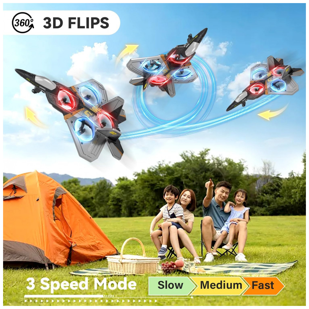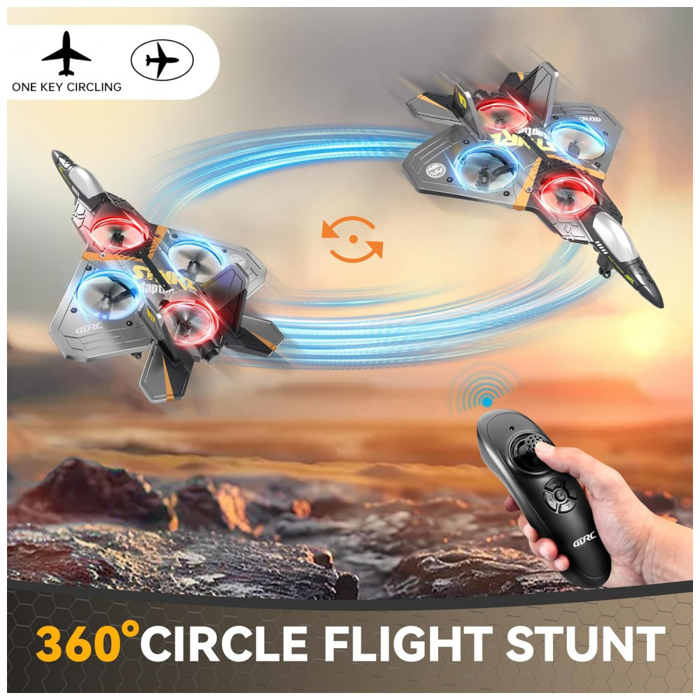 Excelente design avião 4D V17 sem necessidade de montagem e começar a voar quando você abre a caixa. Pressione um botão no controle remoto, o drone do jato de combate irá virar 360 graus ao voar. É fácil voar para crianças, iniciantes e adultos, ajude os iniciantes a aprender a voar passo a passo.