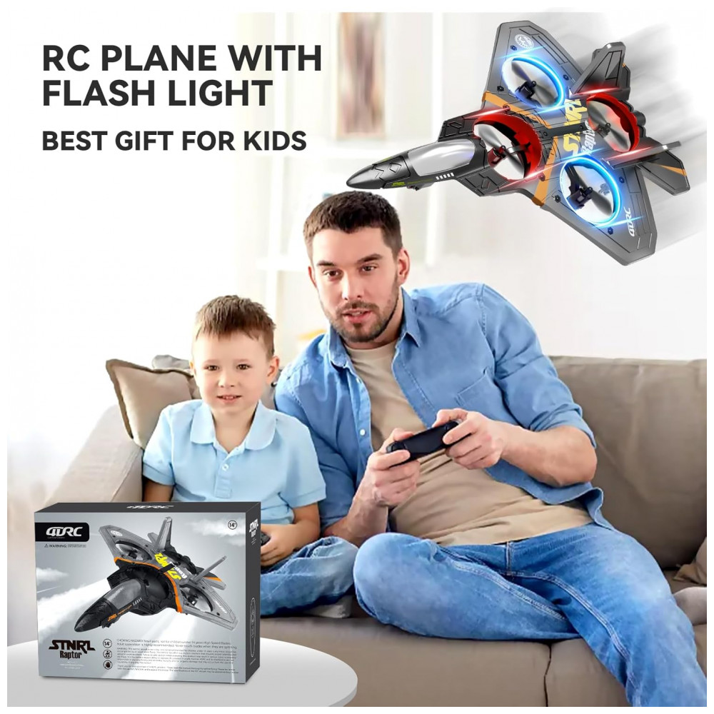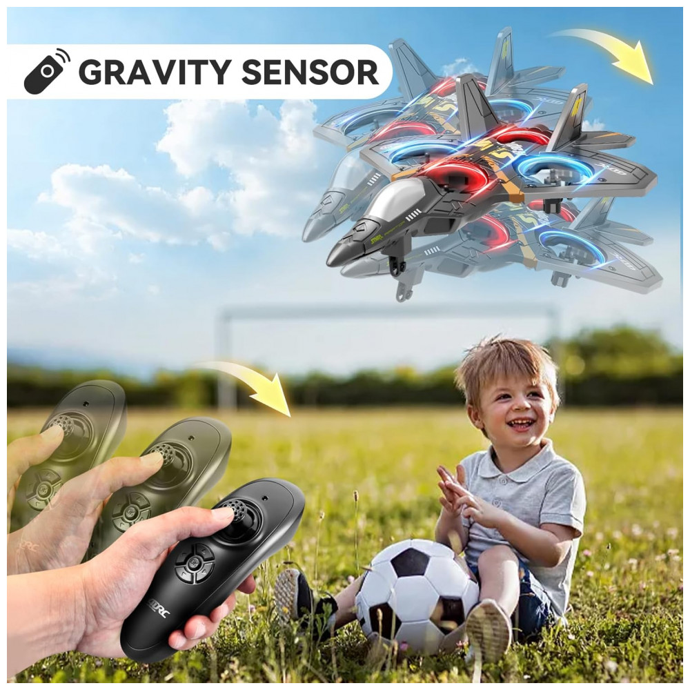Multiple Flying Stunts Este é um brinquedo totalmente simulado de caça real, com uma variedade de acrobacias de vôo, detecção de gravidade, círculos de ar, rolos de ar, círculos de 360 graus, decolagem rápida, etc. sentido, realizando todo o sonho do menino de dirigir um caça a jato rc.
