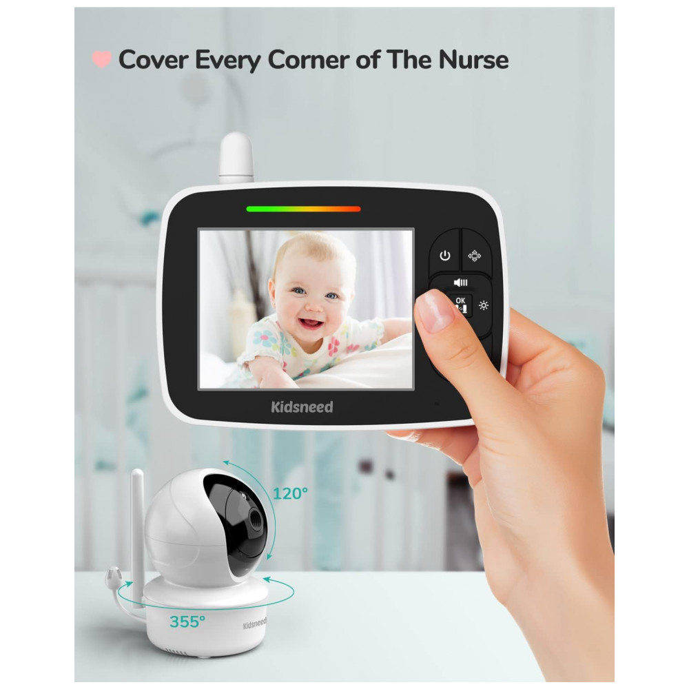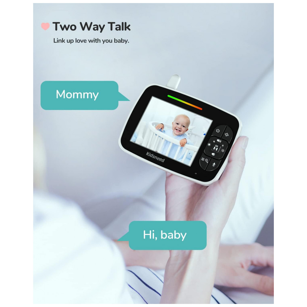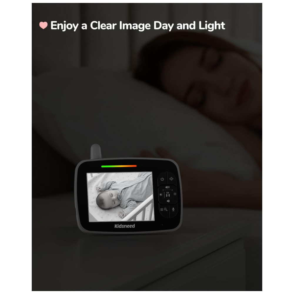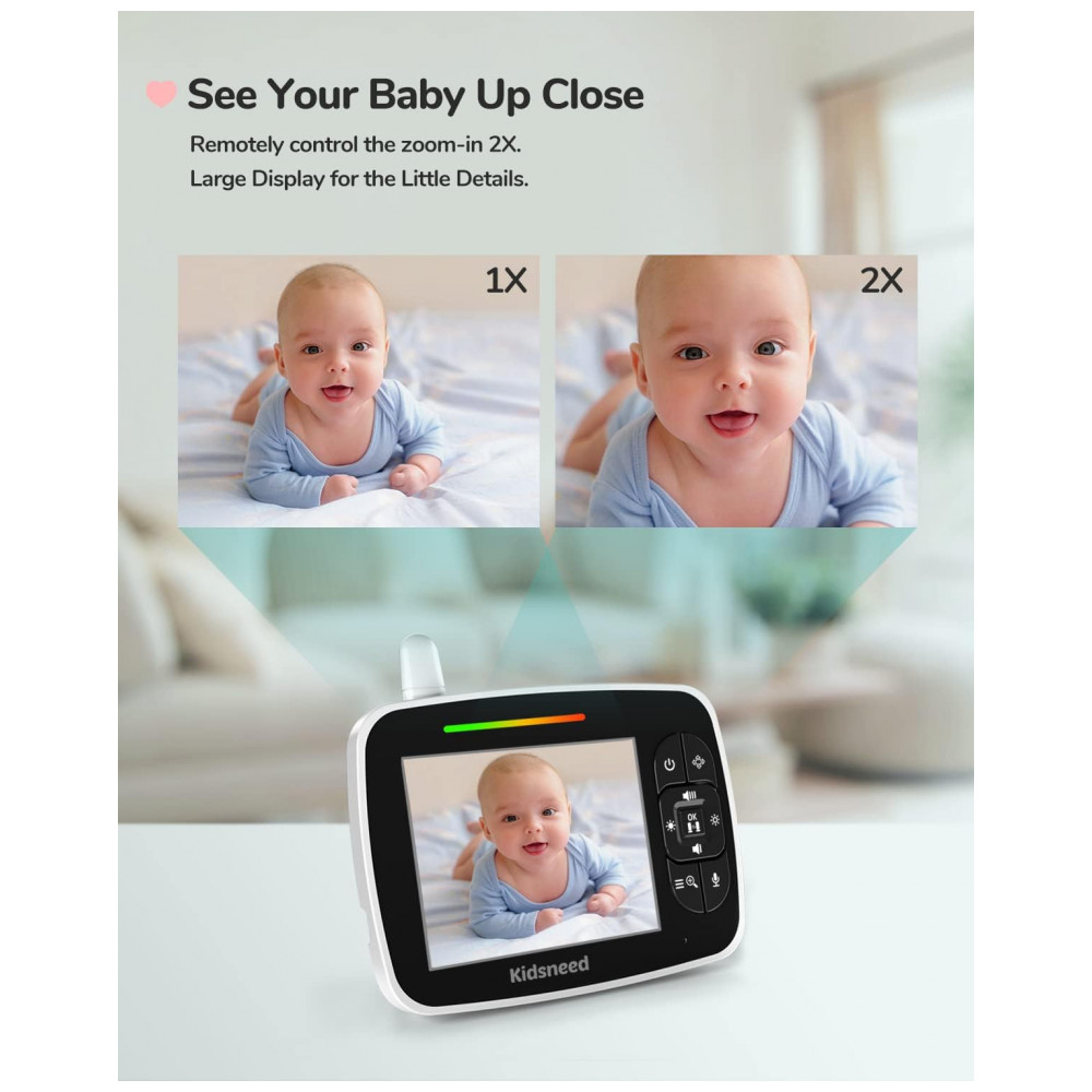 Monitor de bebê avançado e inovador este monitor de câmera de bebê Kidsneed permite que você ouça e veja o bebê claramente sem WiFi e aplicativo. A tecnologia de transmissão de sinal 2.4G FHSS mantém 100 de privacidade, protegida contra hackers. Até 90m2 de alcance, com ultra estabilidade e ultra segurança e lembrete de desconexão. Até quatro câmeras podem ser adicionadas a este monitor de bebê, o que é útil se você tiver mais de um filho para monitorar ou quiser que o sistema cubra mais áreas em sua casa